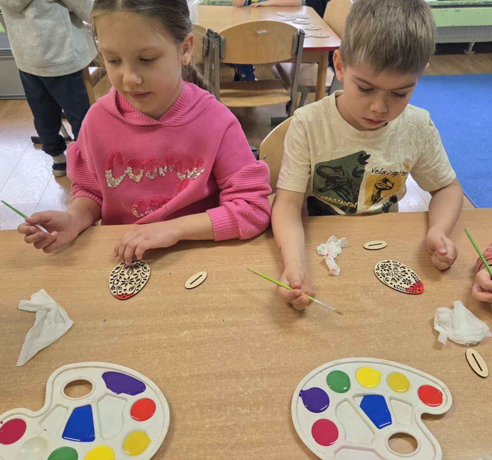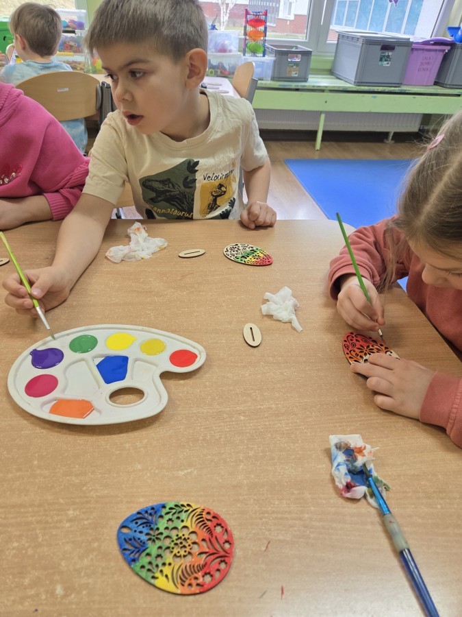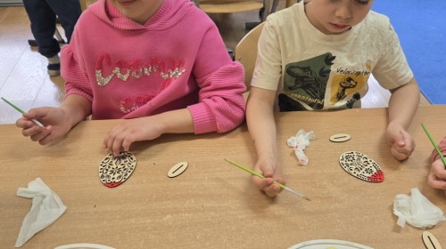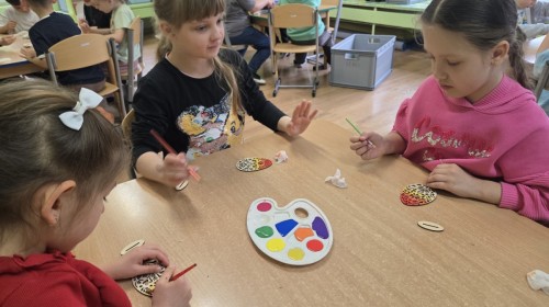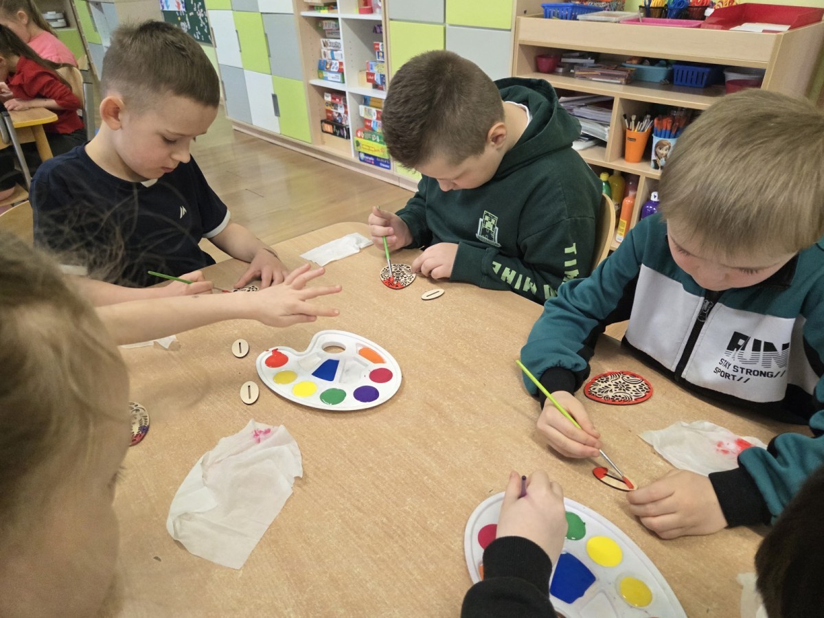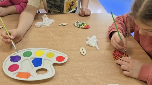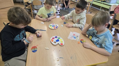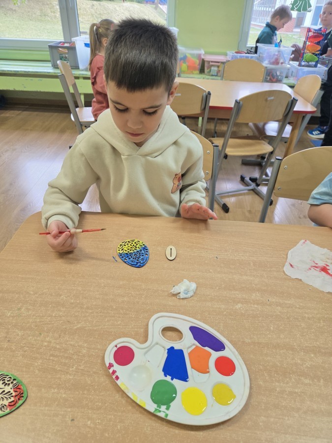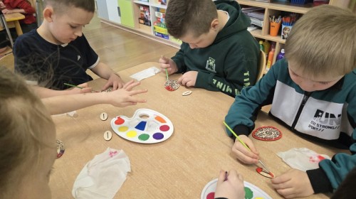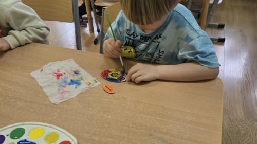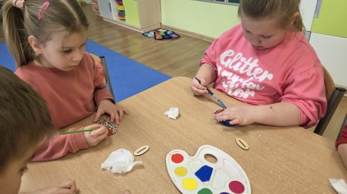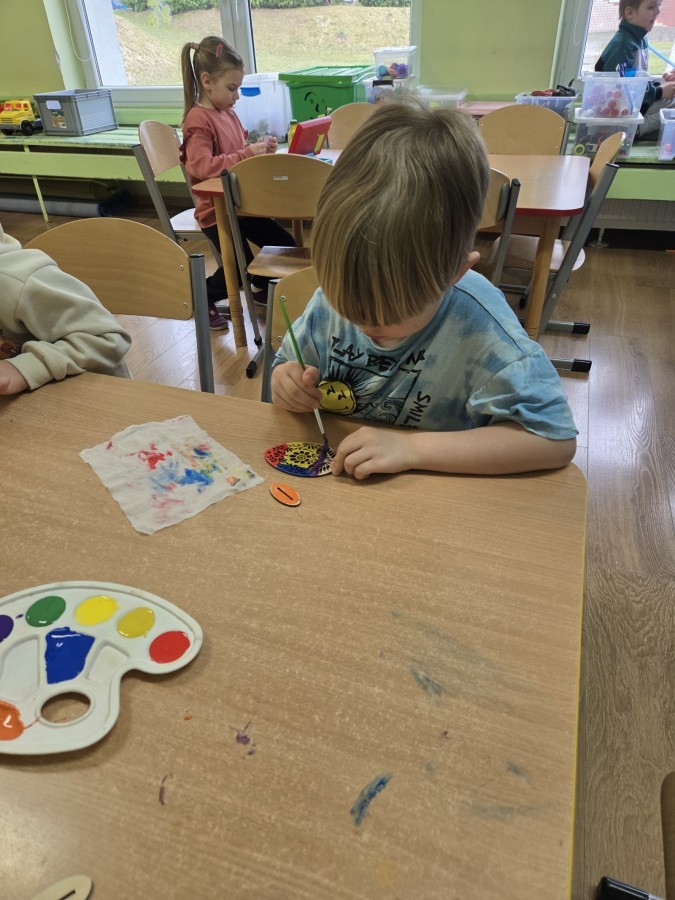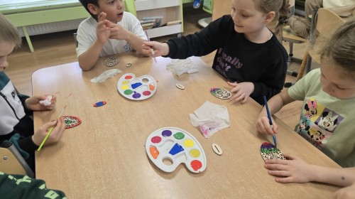 W tym tygodniu dzieci z ogromnym zaangażowaniem i radością przystąpiły do malowania drewnianych jajek wielkanocnych.