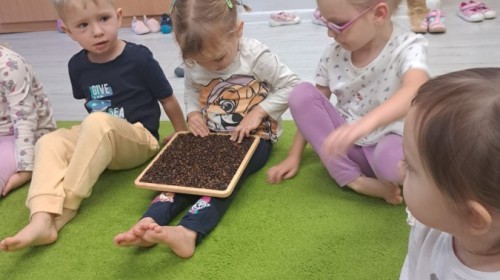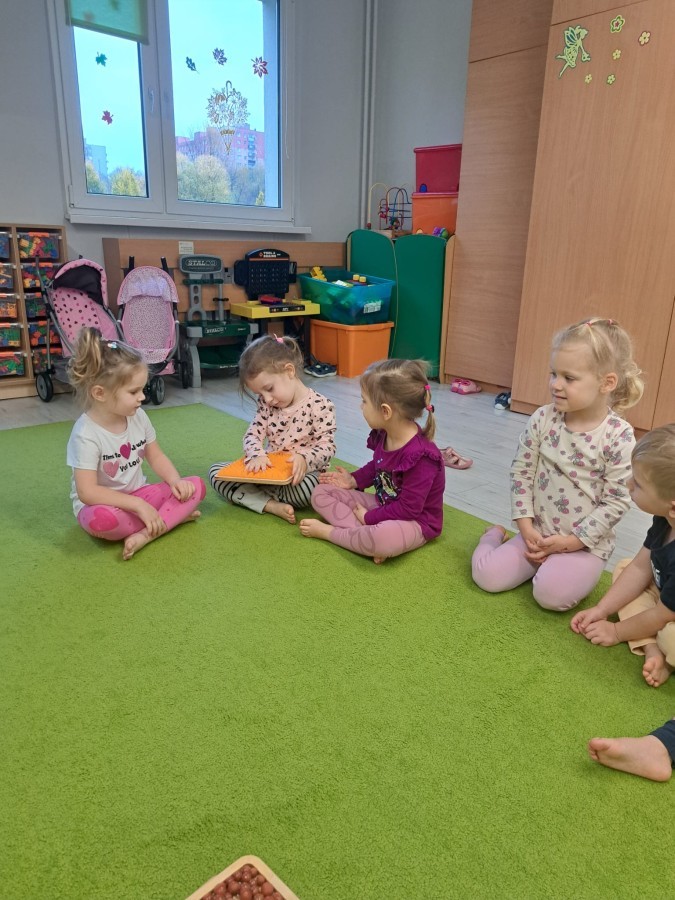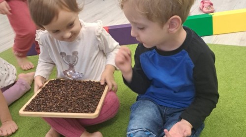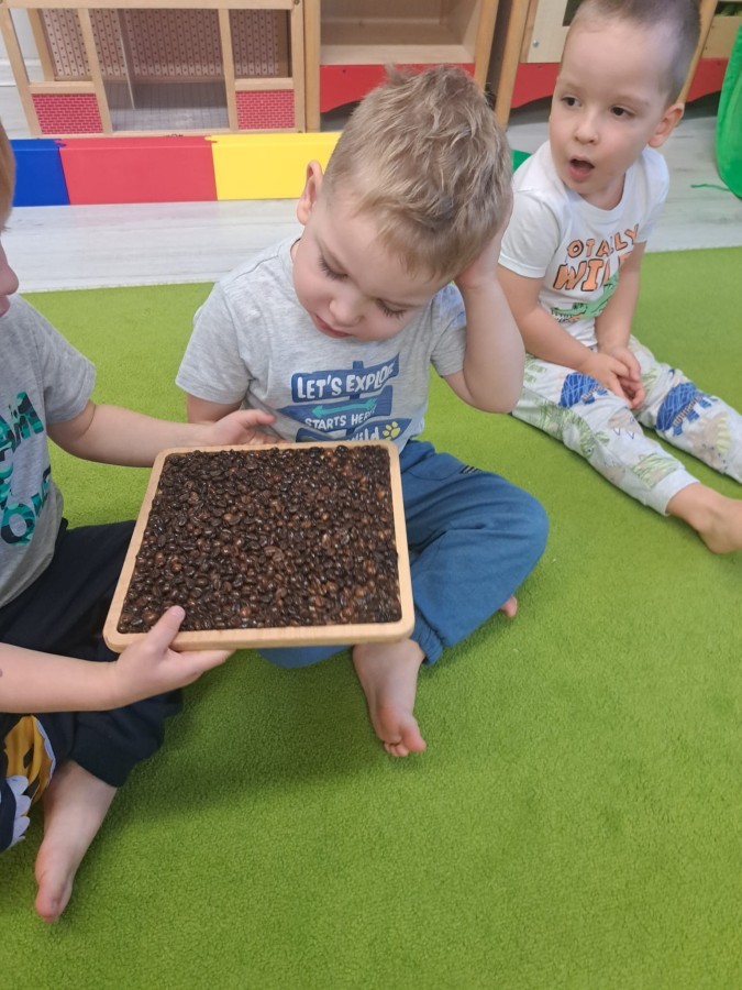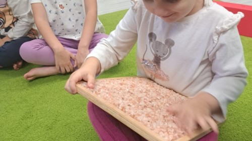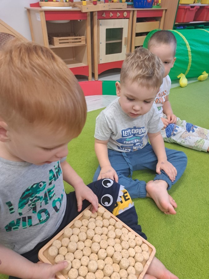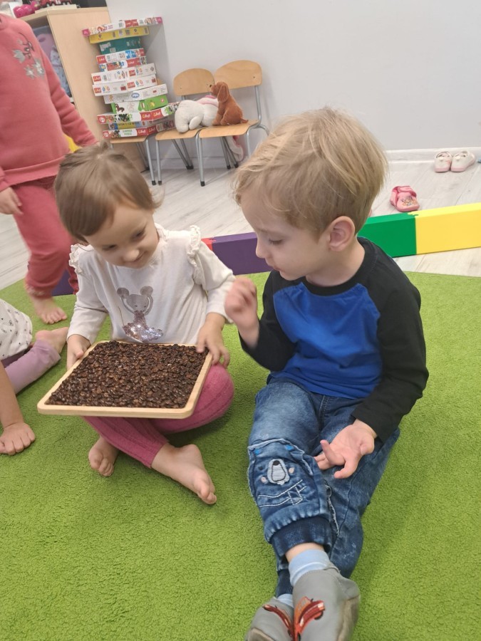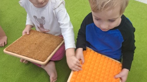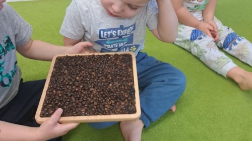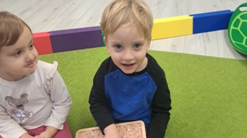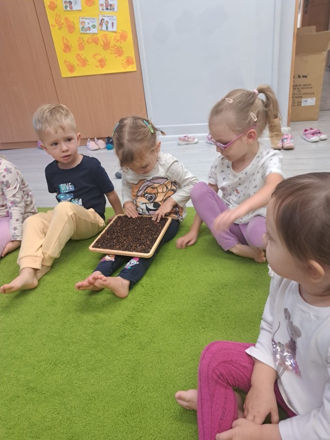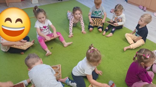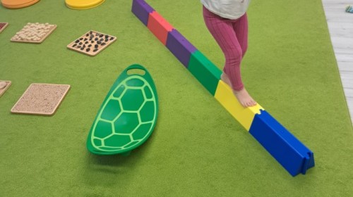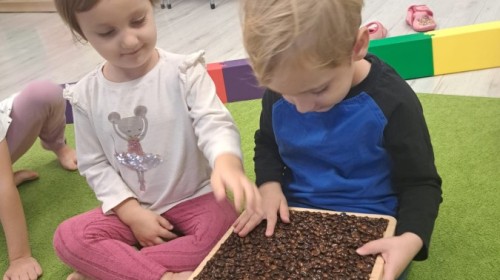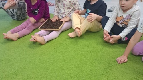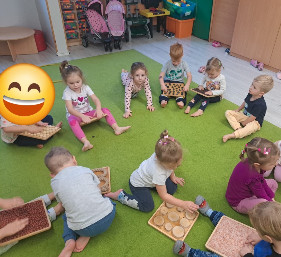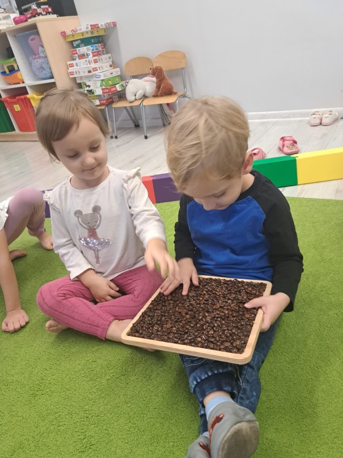 i przechodząc po niej boso, dzieci doświadczały różnorodnych faktur, co stymulowało zmysł dotyku, rozwijało koordynację ruchową
