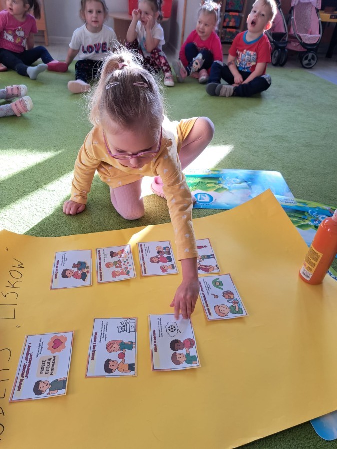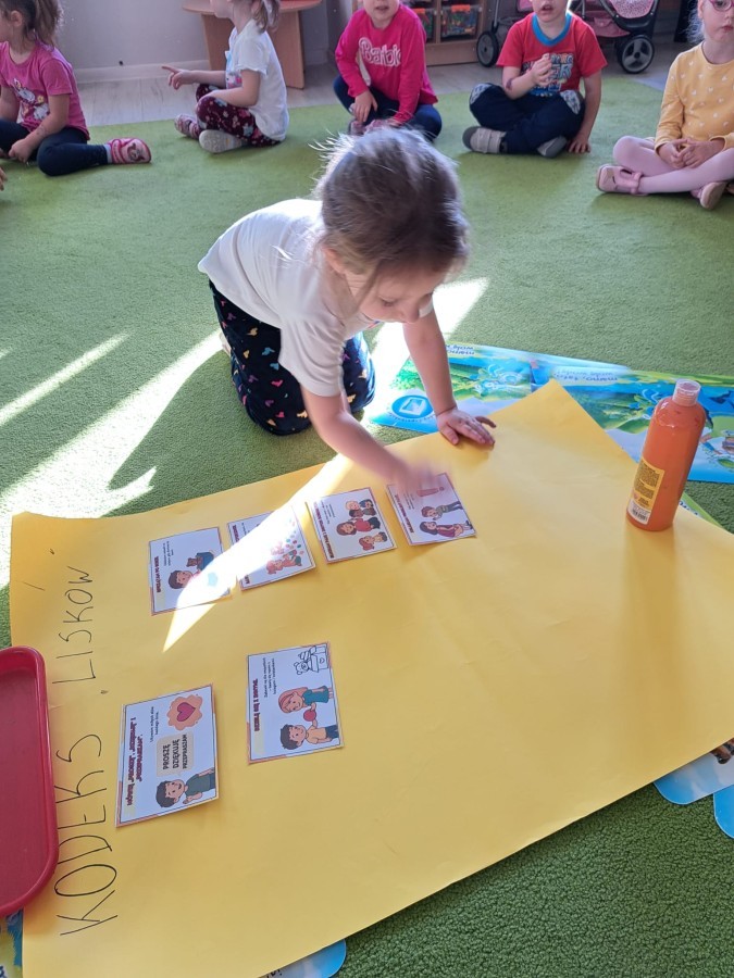 i świadomość własnego ciała. Podczas pokonywania toru przeszkód dzieci uczyły się koncentracji, planowania ruchu oraz pokonywania wyzwań. W tym tygodniu "Liski" stworzyły własny kodeks zasad, który wspiera budowanie relacji, poczucie odpowiedzialności, bezpieczeństwa i wzajemnego szacunku w grupie.