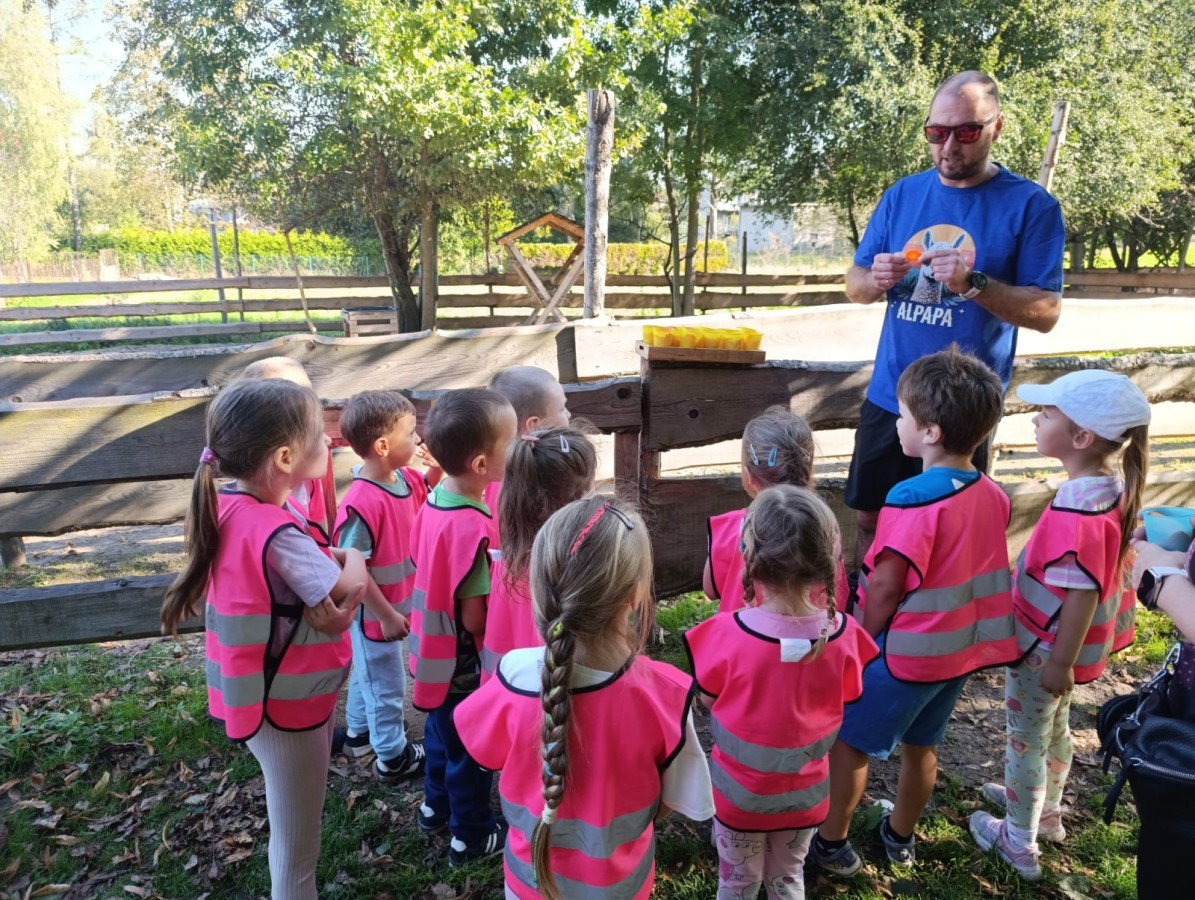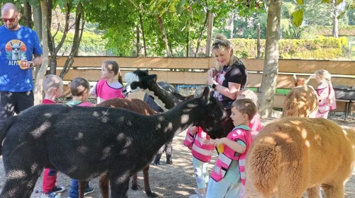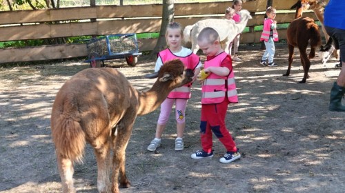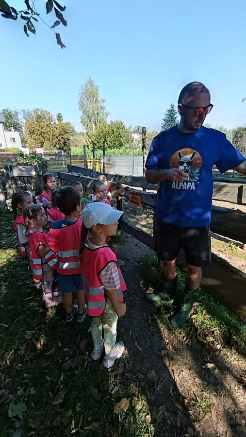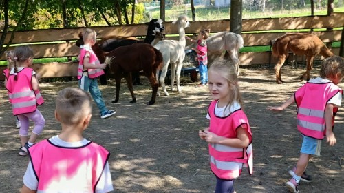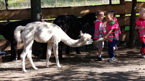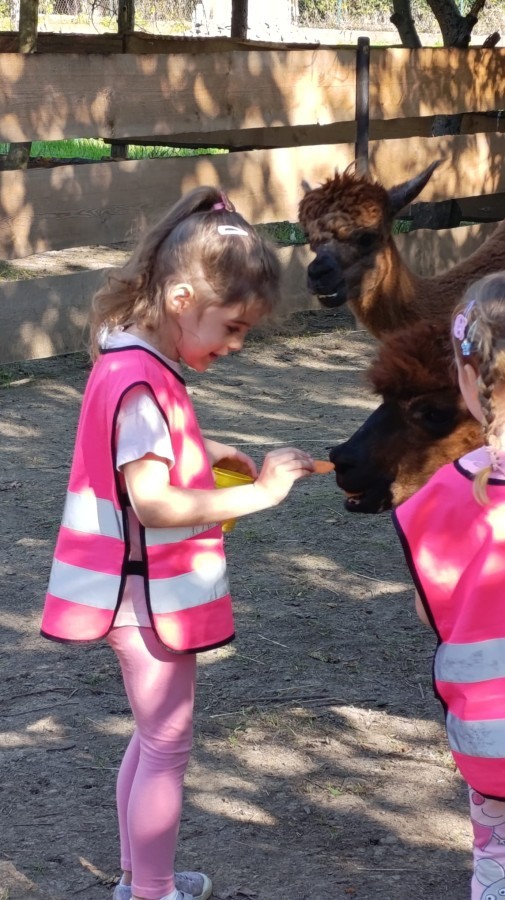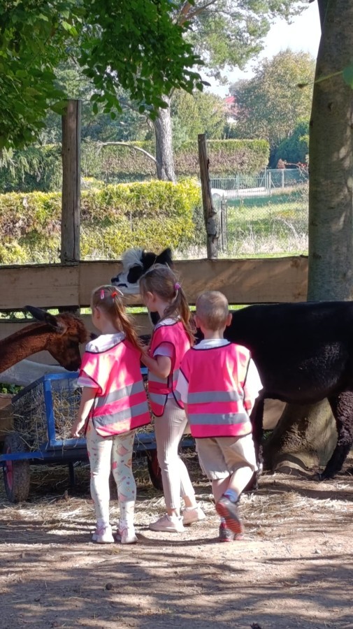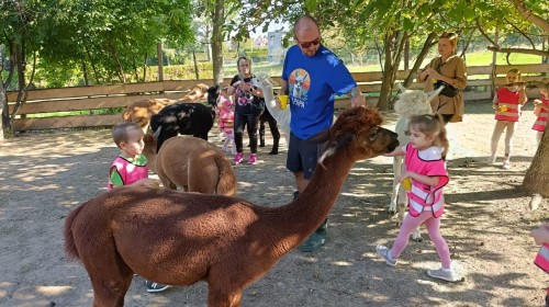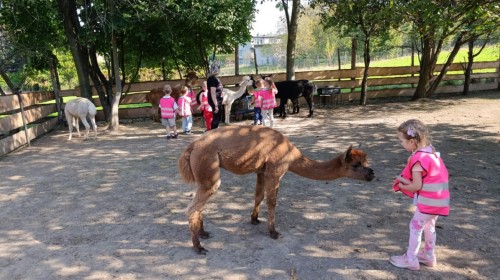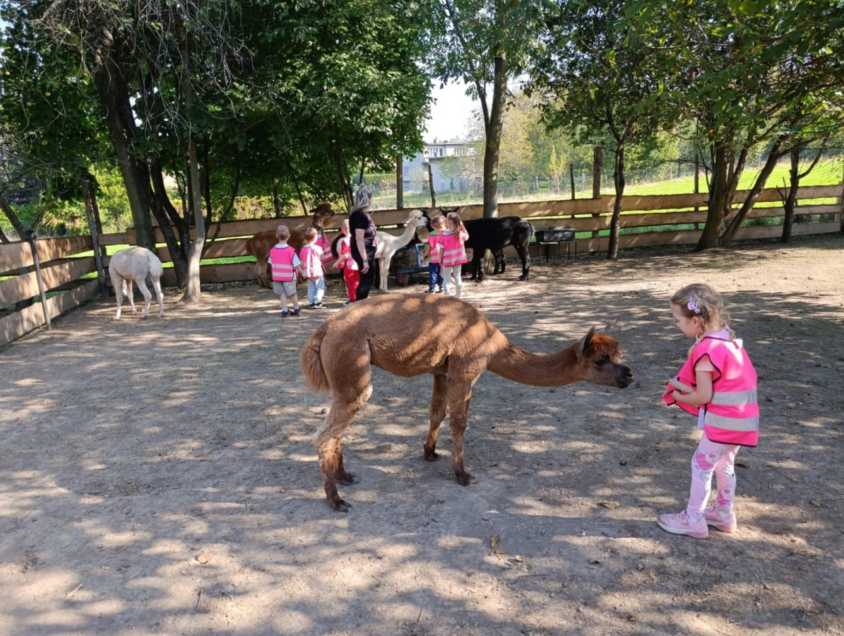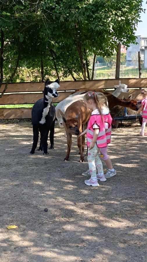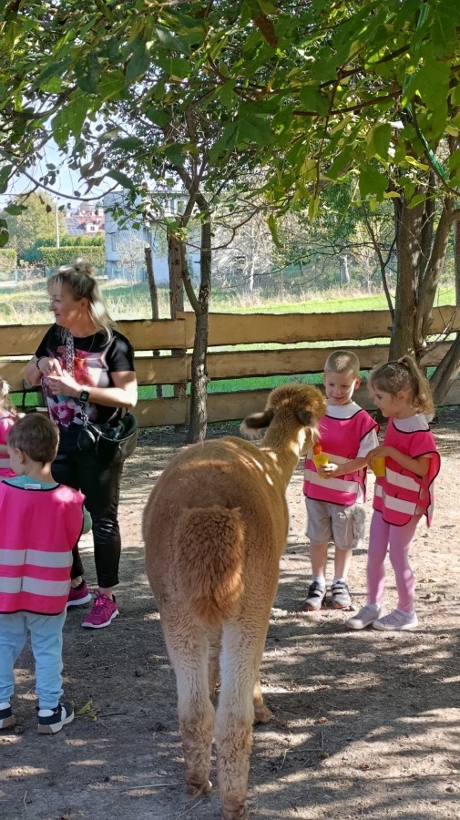 W poniedziałek 22 września grupa "Jeżyki' udała się na wycieczkę do Słodkiego Zakątka na spotkanie z alpakami. Dzieci mogły poobserwować,alpaki podczas ich zabawy na wybiegu oraz mini zagrodę z króliczkami. Największą atrakcją była możliwość uczestniczenia w karmieniu zwierząt oraz zabawa na świeżym powietrzu przy kuchni błotnej, piaskownicy, czy mini warsztacie. Wizyta w Słodkim Zakątku była doskonałą okazją do obcowania z naturą, nauką dbania o zwierzęta oraz świetną zabawą. Bardzo dziękujemy naszym wspaniałym Rodzicom za pomoc w organizacji wycieczki.