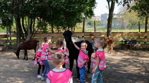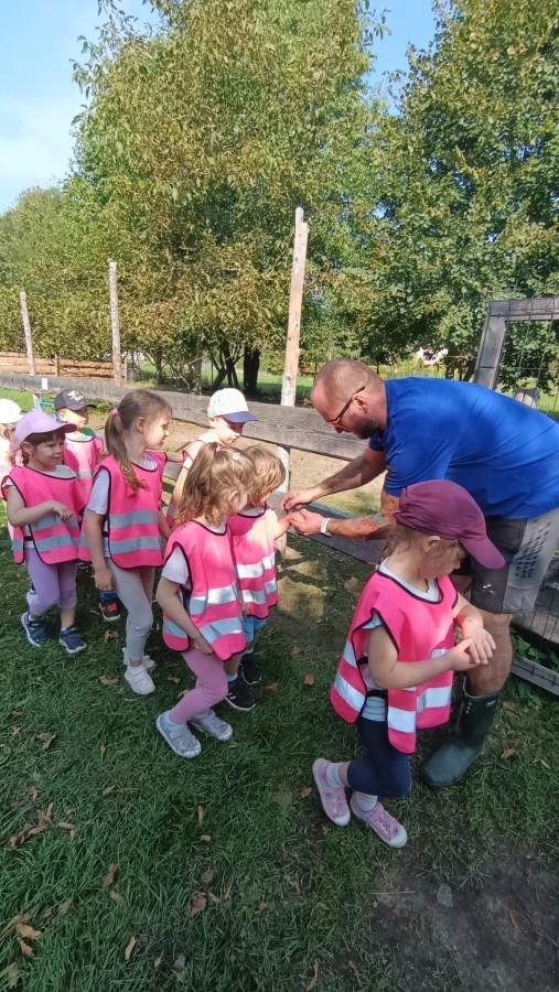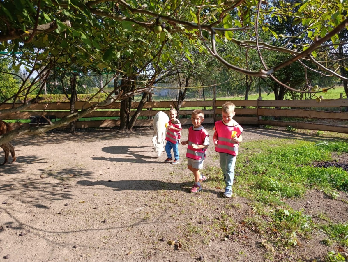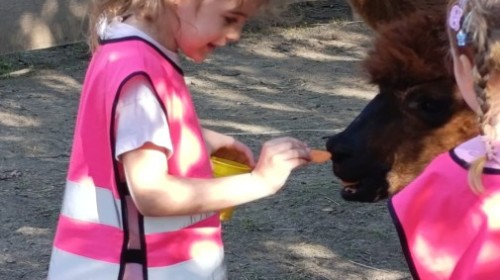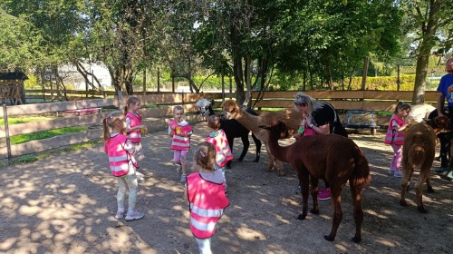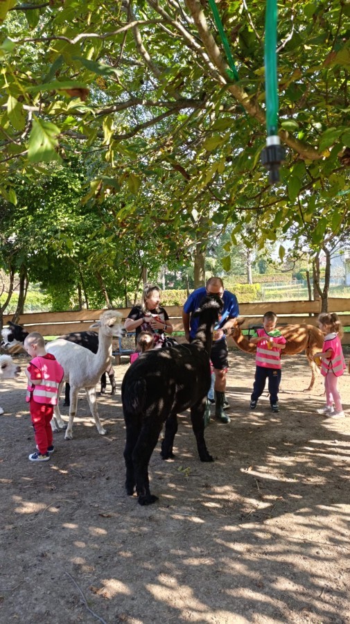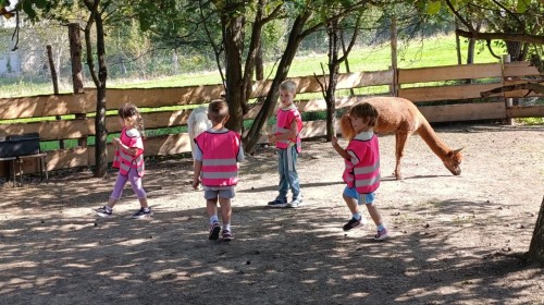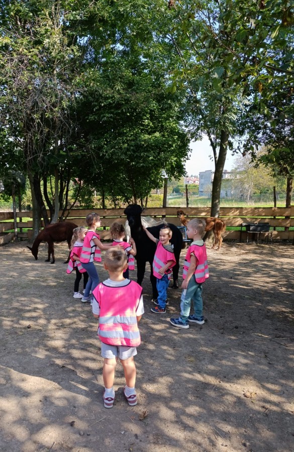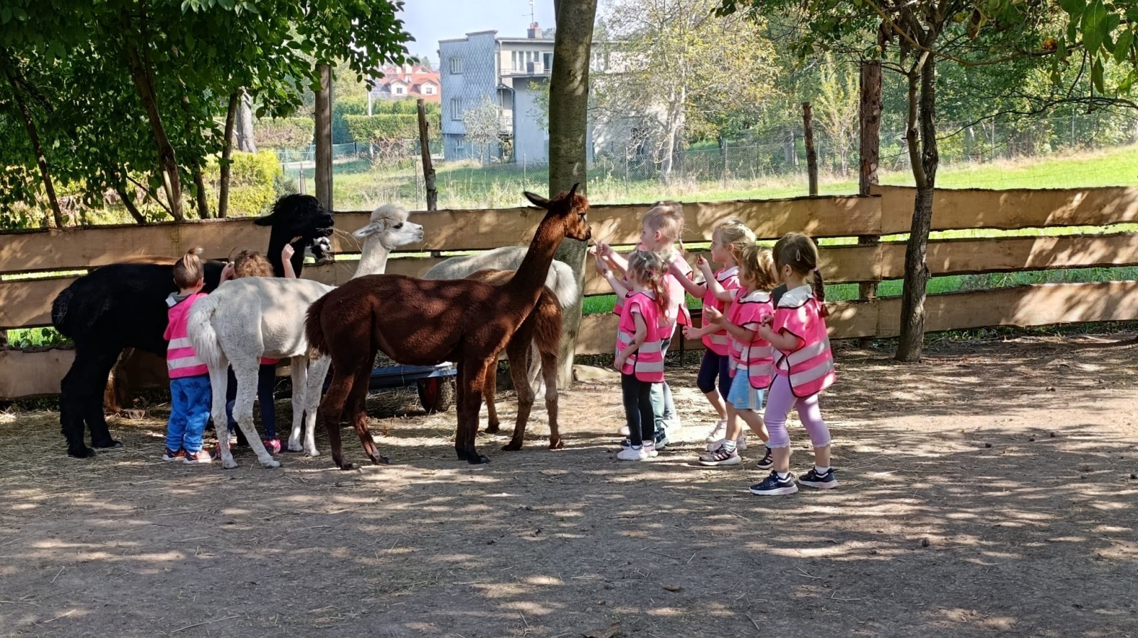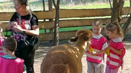 W poniedziałek 22 września grupa "Jeżyki' udała się na wycieczkę do Słodkiego Zakątka na spotkanie z alpakami. Dzieci mogły poobserwować,alpaki podczas ich zabawy na wybiegu oraz mini zagrodę z króliczkami. Największą atrakcją była możliwość uczestniczenia w karmieniu zwierząt oraz zabawa na świeżym powietrzu przy kuchni błotnej, piaskownicy, czy mini warsztacie. Wizyta w Słodkim Zakątku była doskonałą okazją do obcowania z naturą, nauką dbania o zwierzęta oraz świetną zabawą. Bardzo dziękujemy naszym wspaniałym Rodzicom za pomoc w organizacji wycieczki.