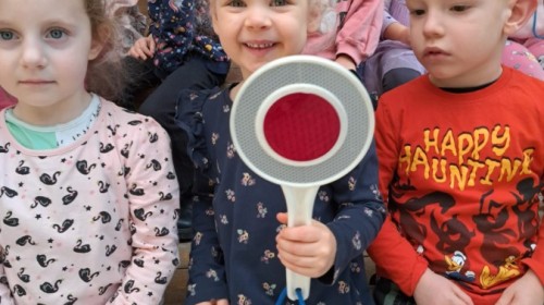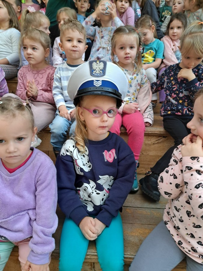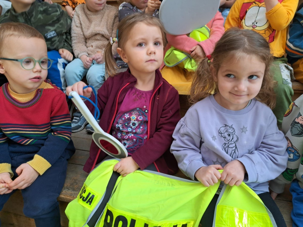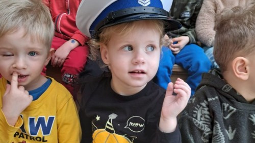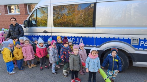5 listopada grupa „Liski”, wraz z innymi grupami przedszkolnymi, spotkała się z policjantami, aby porozmawiać o zasadach bezpiecznego poruszania się po ulicy i prawidłowym przechodzeniu przez przejście dla pieszych. Po krótkiej rozmowie przedszkolaki mogły zwiedzić wóz policyjny, obejrzeć jego wyposażenie i posłuchać sygnałów. To było ciekawe i pełne wrażeń spotkanie, które pomogło dzieciom lepiej zrozumieć, jak dbać o swoje bezpieczeństwo.