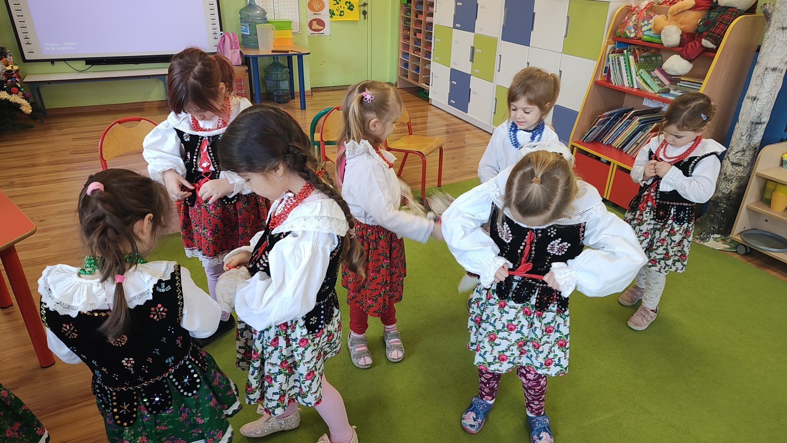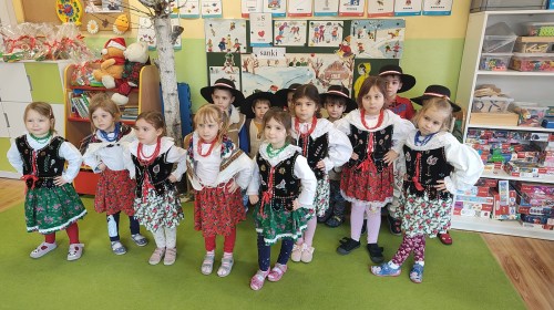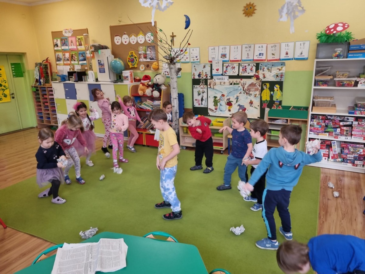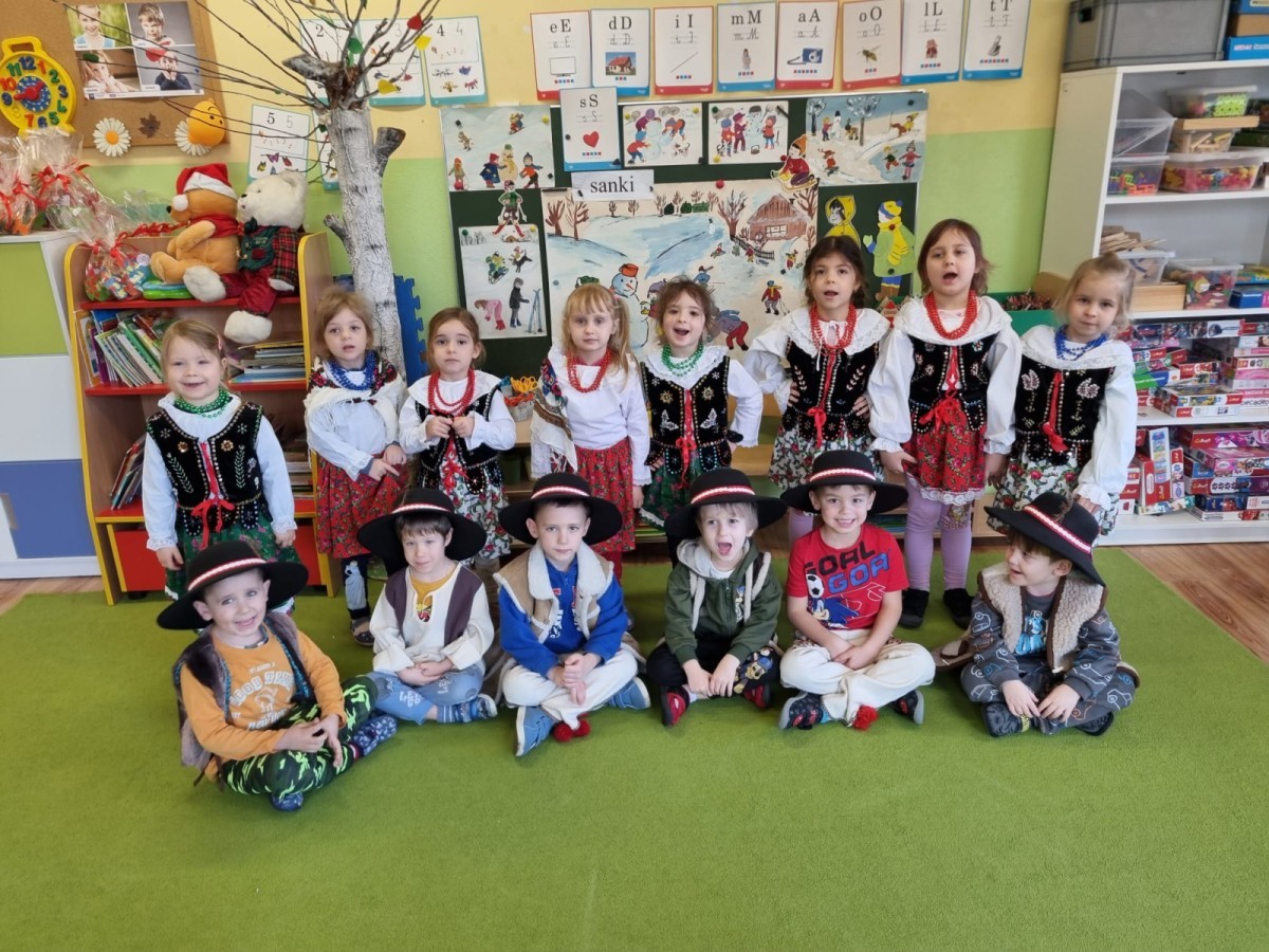 Po grudniowych świątecznych przygotowaniach przyszedł w Muchomorkach czas na pracowity STYCZEŃ, a wraz z nim wielkie przygotowania do obchodów najpiękniejszego święta jakim jest Dzień Babci i Dziadka. Ten dzień jest obchodzony w naszym przedszkolu szczególnie uroczyście. Z tej okazji Muchomorki obdarowały swoich najbliższych uroczystymi występami. W ten sposób całymi sercami podziękowały za wszelkie dobro, które od dziadków otrzymują. Przygotowań do występów było co niemiara, a ich efekty miło dziadków zaskoczyły. W tym roku podczas kolędowania byliśmy góralami. Były piosenki, piękne wiersze, kolędy i moc życzeń. Oprócz przygotowań do części artystycznej dzieci obdarowały Dziadków prezentami. W styczniu mieliśmy okazję przekonać się czy śnieg jest czysty, czy brudny. To doświadczenie przekonało niektórych smakoszy białego puszku o tym, że…. Wykonaliśmy również doświadczenie z wodą i solą, a przez lupę oglądaliśmy powstałe kryształki soli. Mieliśmy okazję porozmawiać na temat Układu Słonecznego i sami obserwowaliśmy ruch planet. Poznaliśmy w tym miesiącu nowe literki, a znamy już 10 liter i uczymy się z nich układać proste wyrazy. Dalej ćwiczymy zapamiętując kolejne dni tygodnia i nazwy pór roku. Do zabawy wykorzystujemy również tablicę multimedialną. Zapraszamy do galerii.