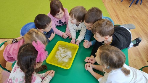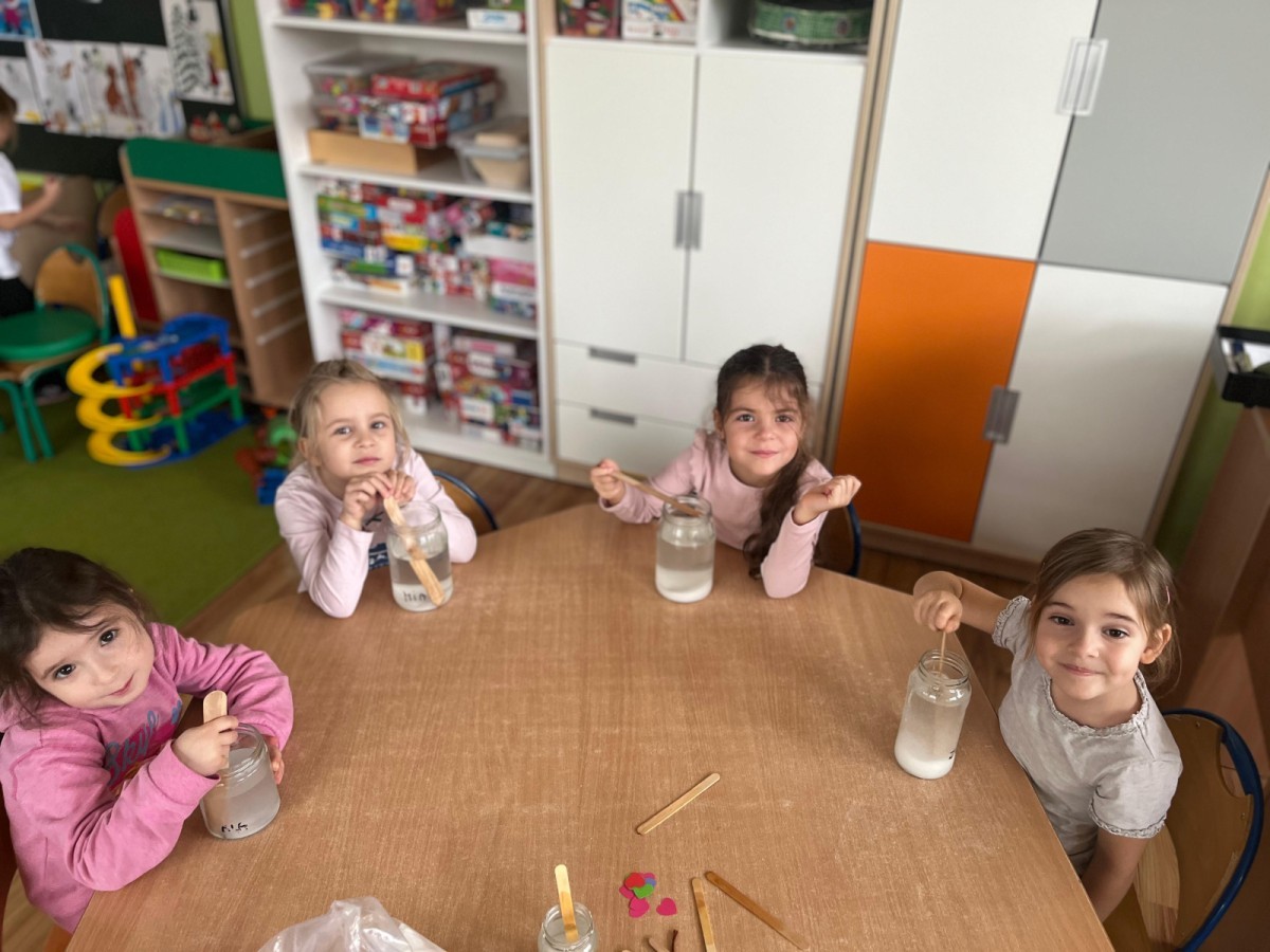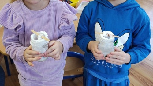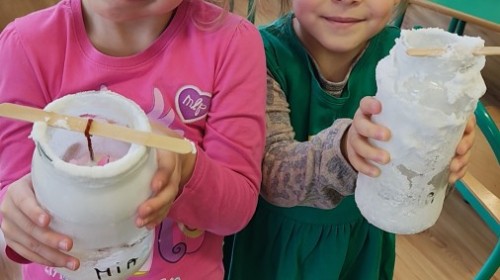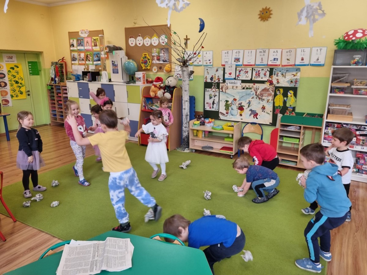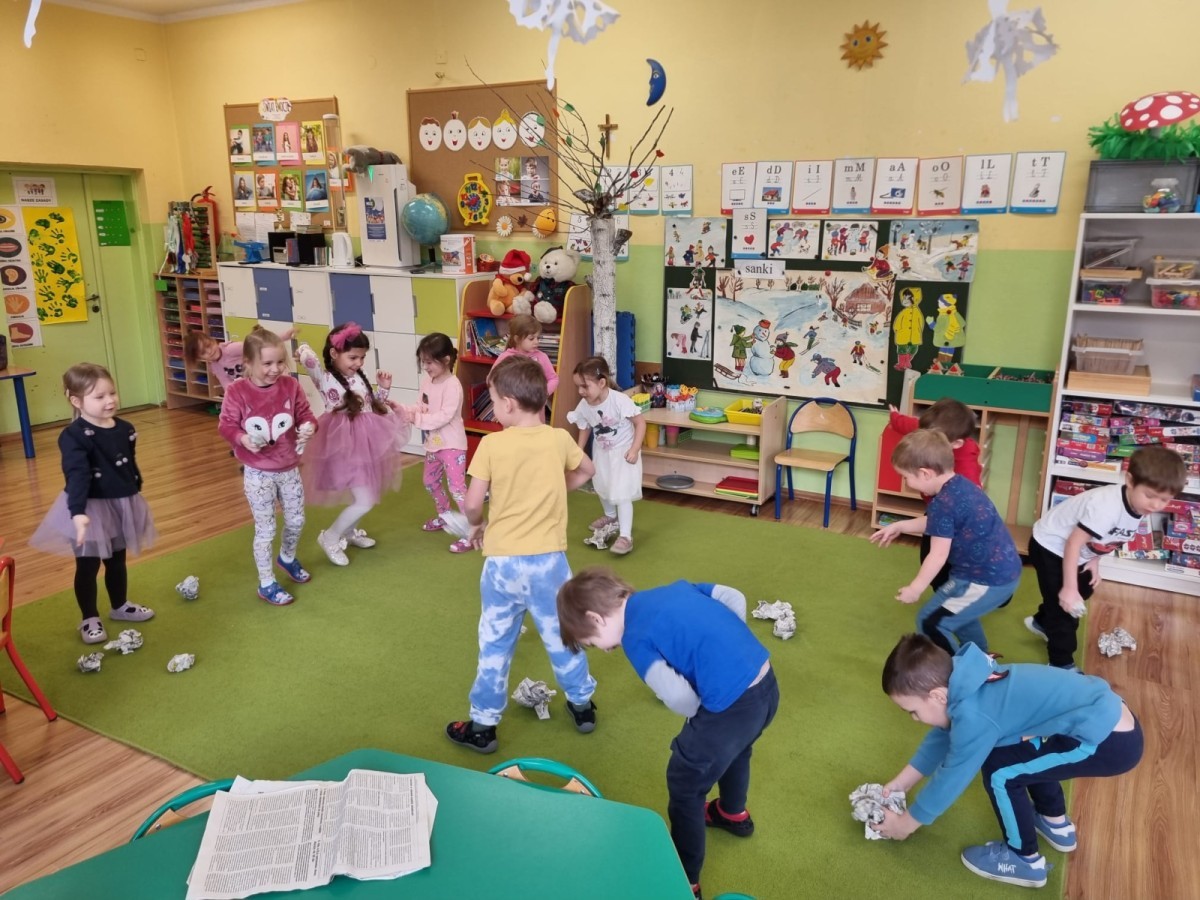 Po grudniowych świątecznych przygotowaniach przyszedł w Muchomorkach czas na pracowity STYCZEŃ, a wraz z nim wielkie przygotowania do obchodów najpiękniejszego święta jakim jest Dzień Babci i Dziadka. Ten dzień jest obchodzony w naszym przedszkolu szczególnie uroczyście. Z tej okazji Muchomorki obdarowały swoich najbliższych uroczystymi występami. W ten sposób całymi sercami podziękowały za wszelkie dobro, które od dziadków otrzymują. Przygotowań do występów było co niemiara, a ich efekty miło dziadków zaskoczyły. W tym roku podczas kolędowania byliśmy góralami. Były piosenki, piękne wiersze, kolędy i moc życzeń. Oprócz przygotowań do części artystycznej dzieci obdarowały Dziadków prezentami. W styczniu mieliśmy okazję przekonać się czy śnieg jest czysty, czy brudny. To doświadczenie przekonało niektórych smakoszy białego puszku o tym, że…. Wykonaliśmy również doświadczenie z wodą i solą, a przez lupę oglądaliśmy powstałe kryształki soli. Mieliśmy okazję porozmawiać na temat Układu Słonecznego i sami obserwowaliśmy ruch planet. Poznaliśmy w tym miesiącu nowe literki, a znamy już 10 liter i uczymy się z nich układać proste wyrazy. Dalej ćwiczymy zapamiętując kolejne dni tygodnia i nazwy pór roku. Do zabawy wykorzystujemy również tablicę multimedialną. Zapraszamy do galerii.