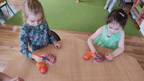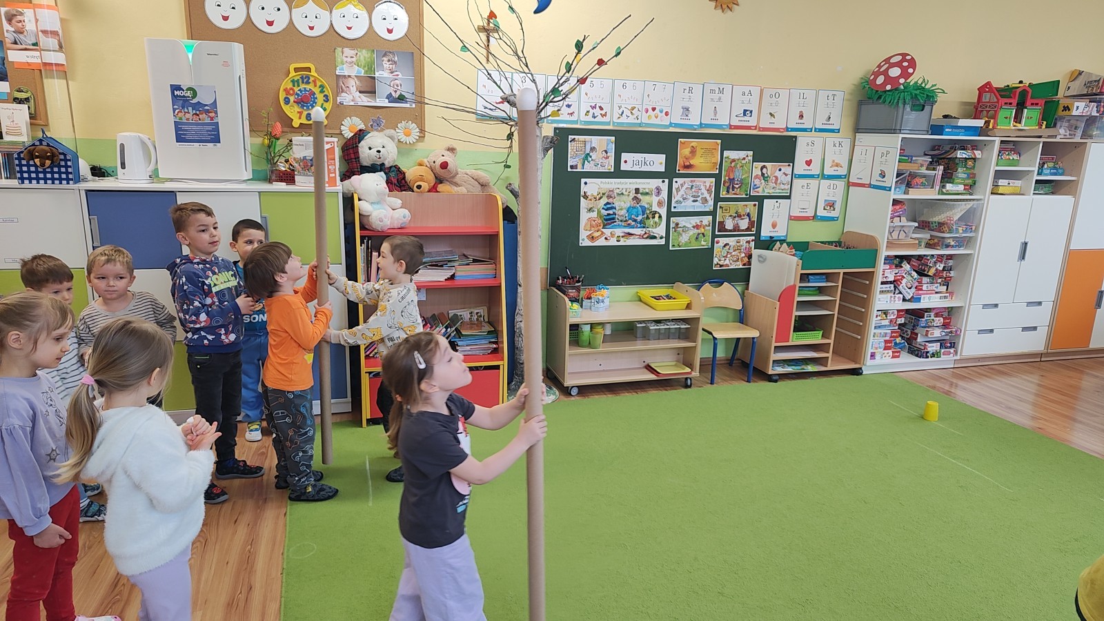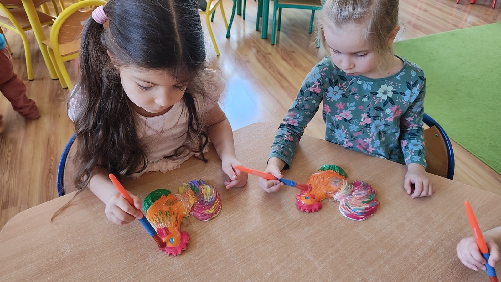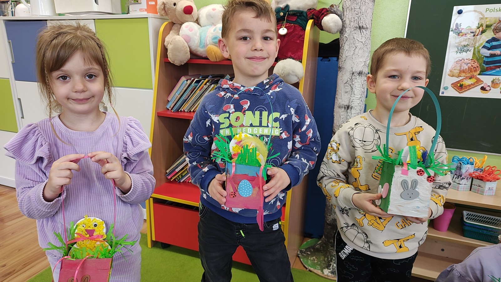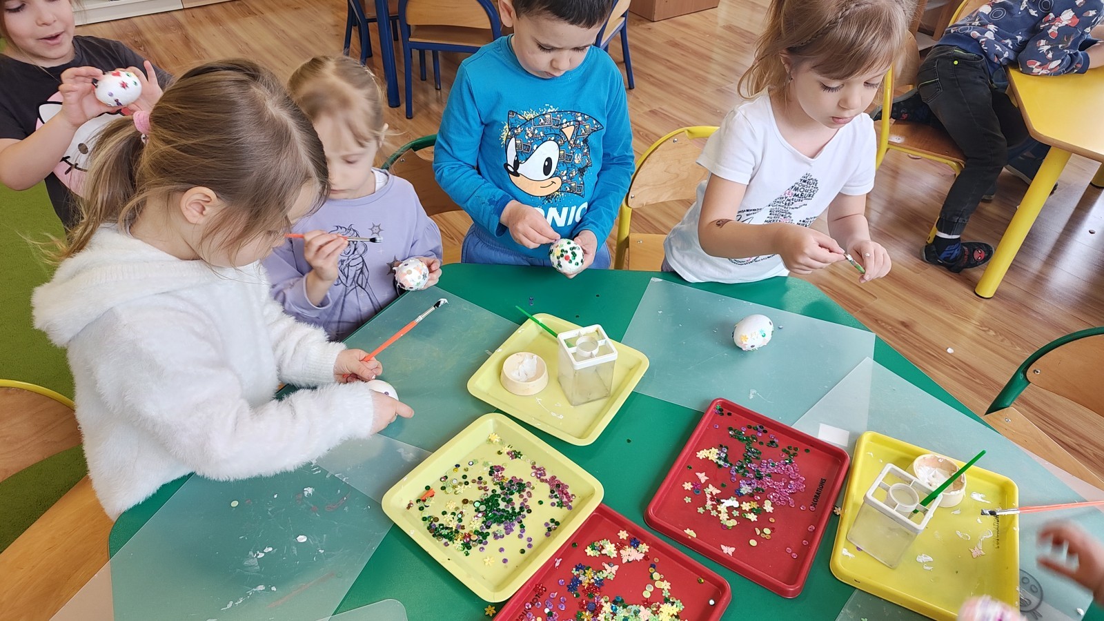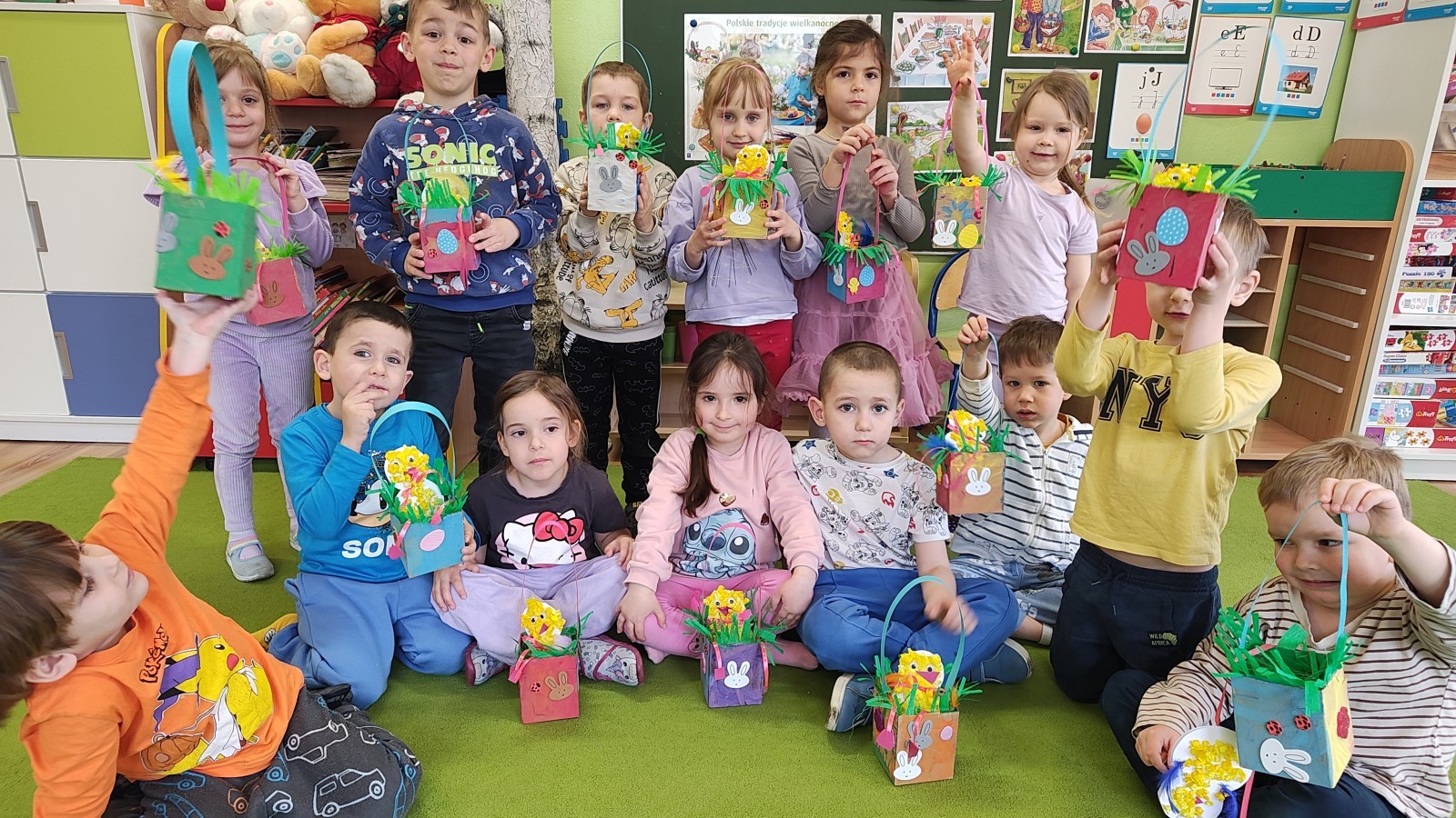 Po powitaniu wiosny, która na dobre zagościła w naszej sali, a trzeba przyznać, że było to dla każdego muchomorka wyjątkowe wydarzenie. Na pożegnanie zimy zrobiliśmy sobie pamiątkowe zdjęcia z Marzanną oraz wykonaliśmy wszystkie zadania jakie zaproponowała nam Pani Wiosna. Wreszcie przyszedł czas na świąteczne przygotowania. Pracę rozpoczęliśmy od malowania gipsowych kogucików na kiermasz świąteczny, który organizowany jest co roku w naszym przedszkolu. Dużo rozmawiamy o zbliżających się świętach i poznajemy tradycje z nimi związane. W związku z tym, że święta wielkanocne to święto jajek wykorzystaliśmy ten czas na zabawy z udziałem jajek. Wykonaliśmy również koszyczki wielkanocne oraz tradycyjne pisanki. Zapraszamy do galerii.