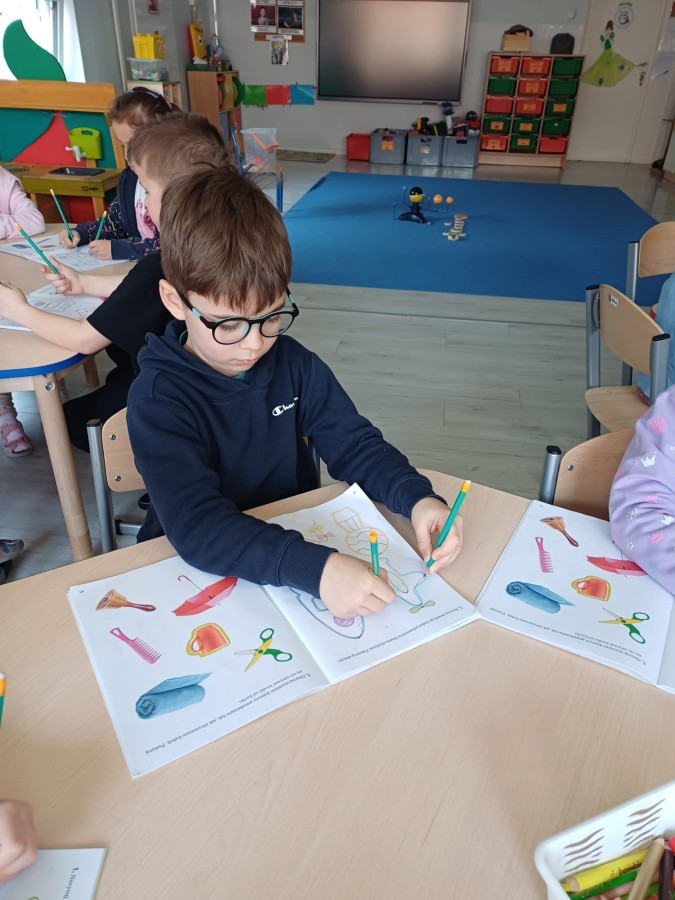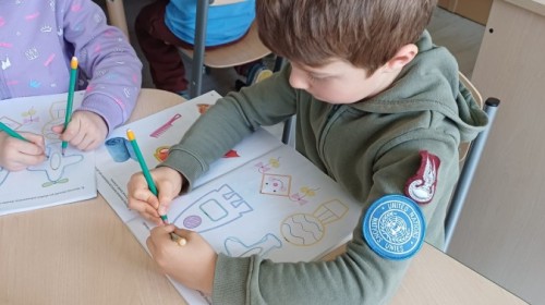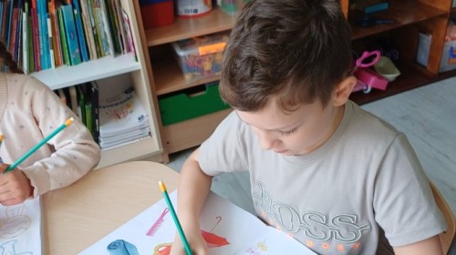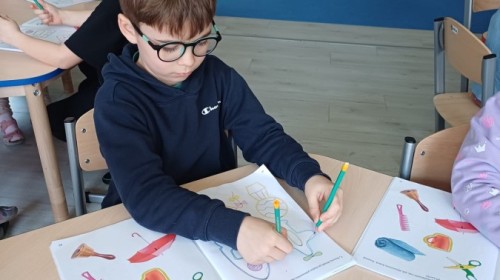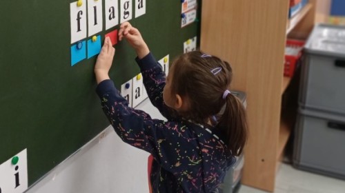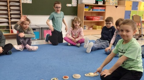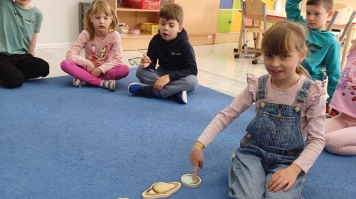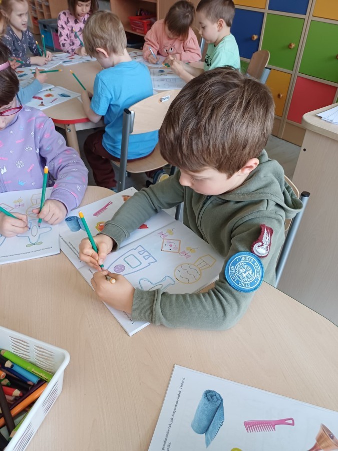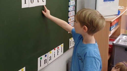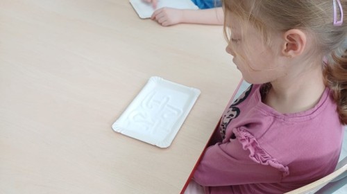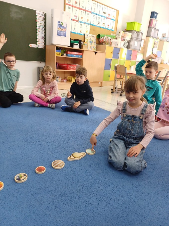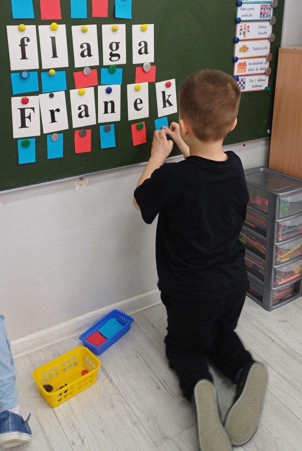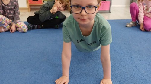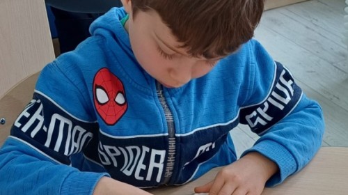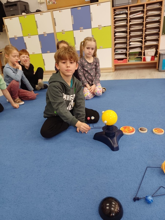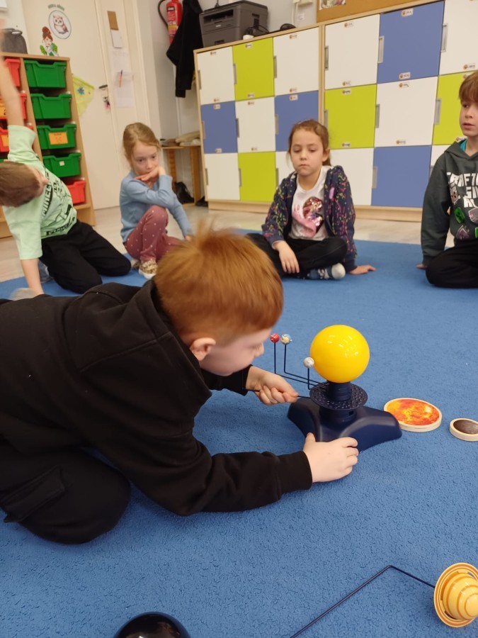 W minionym tygodniu dzieci z grupy Sówek poznały kolejną pisaną literę: "F i f". Aby móc lepiej zapoznać się z jej kształtem oraz poćwiczyć zapisywanie, otrzymały papierowe talerzyki, na których wysypana została sól. Pisząc palcem, mogły wielokrotnie powtórzyć jej kształt. Próbowały zapisać ją także w liniaturze, na tablicy. Tworzyły i odczytywały wyrazy rozpoczynające cię na f i F, utrwalając sobie pozostałe poznane litery oraz zasadę pisowni imion wielką literą. Ponadto Sówki w tym tygodniu wybrały się w podróż po kosmosie. Dzieliły się zgromadzoną już na ten temat wiedzą, jak również zdobywały nowe wiadomości. Ciekawym odkryciem okazało się działanie siły dośrodkowej, która w magiczny- fizyczny sposób utrzymuje krążące obiekty na właściwym torze, nie pozwalając im upaść. W tym tygodniu starszaki wykonały pracę plastycznej, związaną z tematem tygodnia- własny projekt rakiety kosmicznej. Próbowały również swoich sił w rysowaniu oburącz po śladzie, ćwicząc równocześnie obie półkule mózgu.
