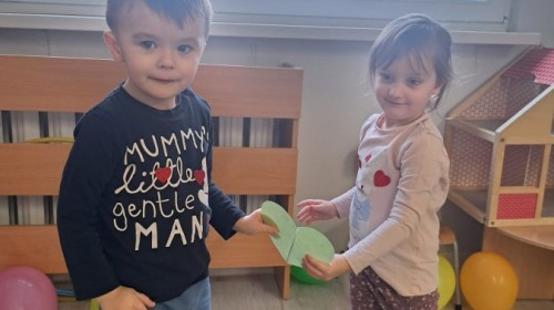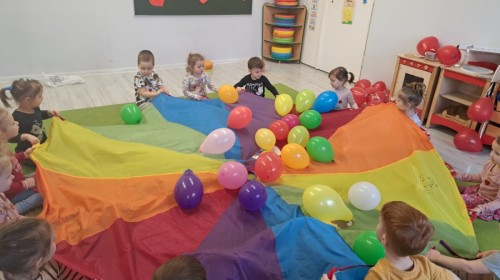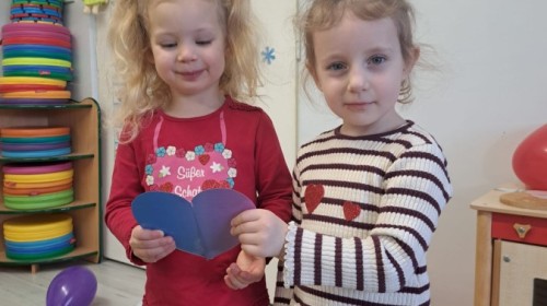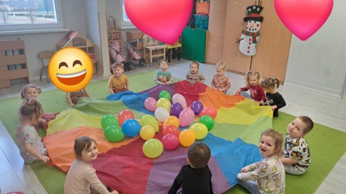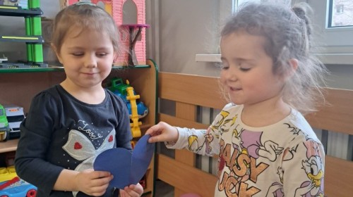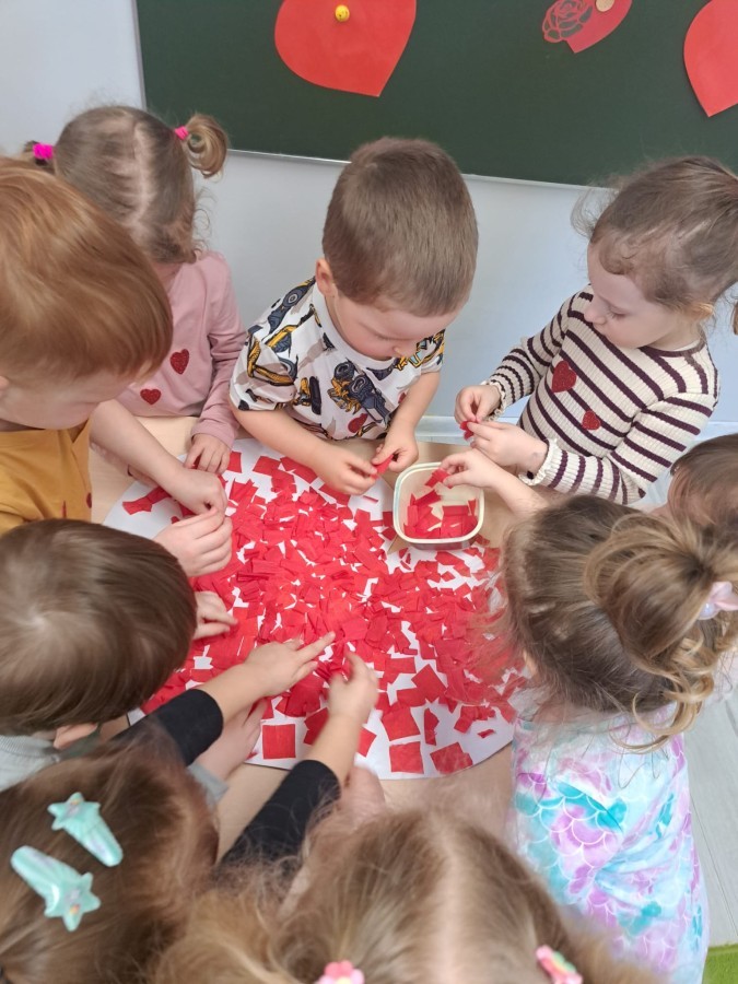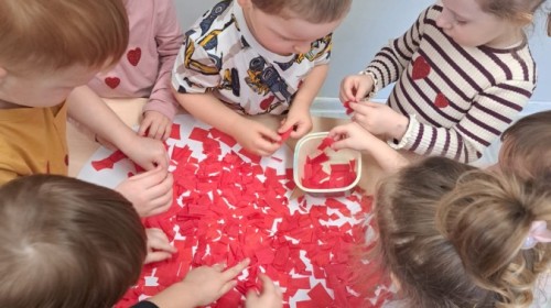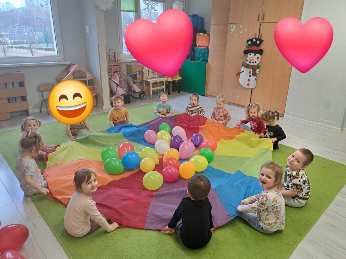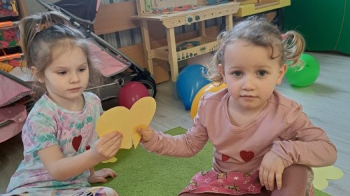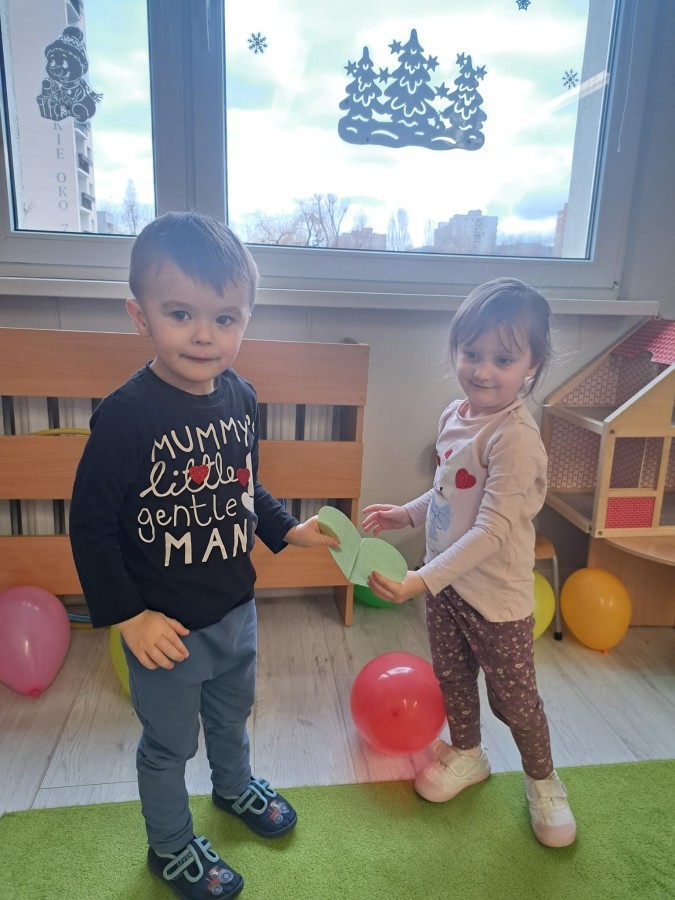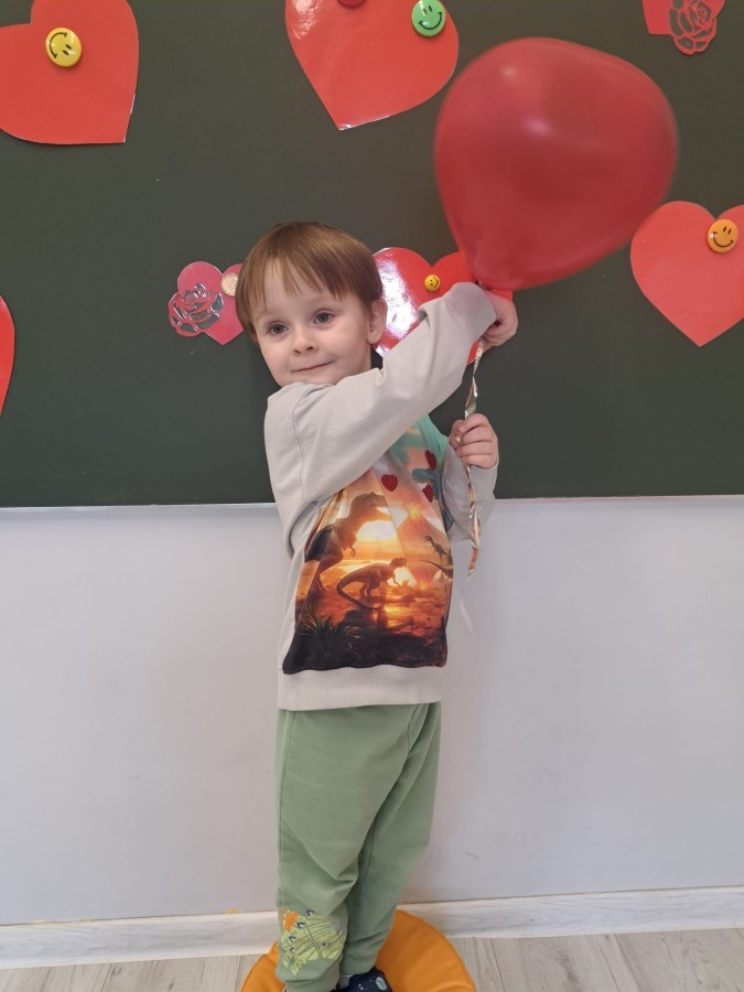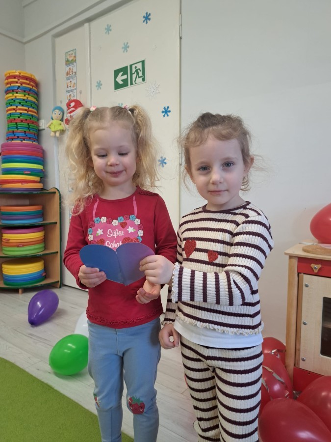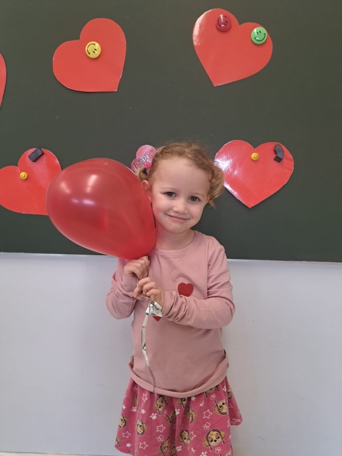 Podczas walentynkowych zajęć dzieci z grupy „Liski” uczestniczyły w zabawach rozwijających współpracę, przedszkolaki łączyły połówki serc, ćwicząc spostrzegawczość i współdziałanie w parach. Następnie układały drogę z papierowych serc, rozwijając orientację przestrzenną. Na zakończenie spotkania odbyła się zabawa z balonami, która dostarczyła dzieciom dużo śmiechu.