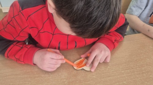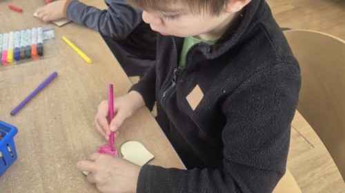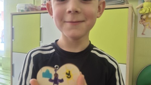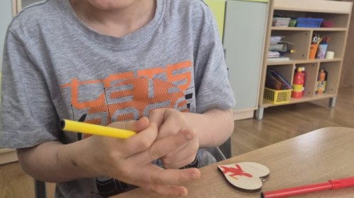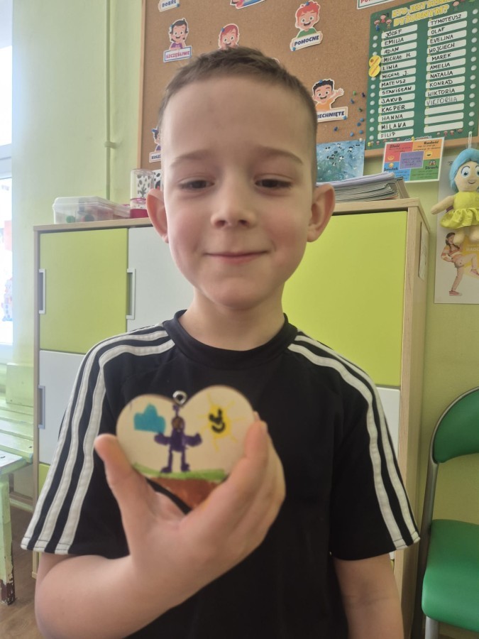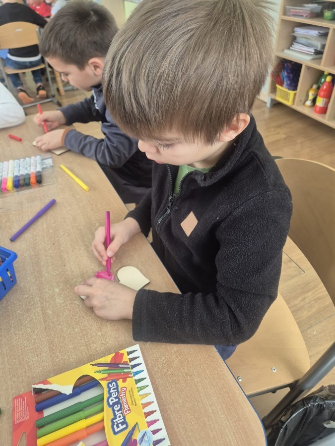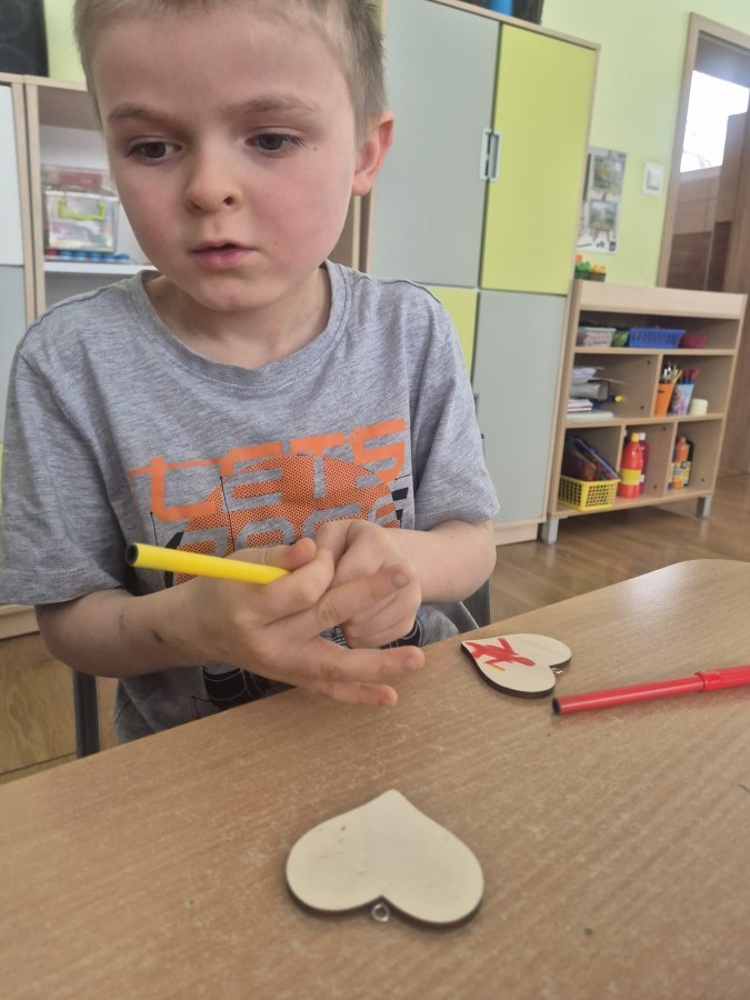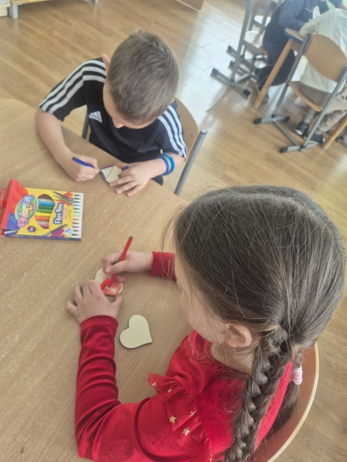 i wzruszająca chwila pełna szczerych dziecięcych wypowiedzi. Następnie otworzyliśmy naszą walentynkową pocztę i rozdaliśmy kartki przygotowane przez dzieci. Radości i uśmiechów było co niemiara! Nie zabrakło również ruchu – pobawiliśmy się w zabawę „Serduszka”, która wprowadziła wszystkich w jeszcze bardziej radosny nastrój. W części plastycznej dzieci ozdabiały drewniane serduszka kolorowymi pisakami. Powstały prawdziwe małe dzieła sztuki – każde inne, wyjątkowe i tworzone z sercem.