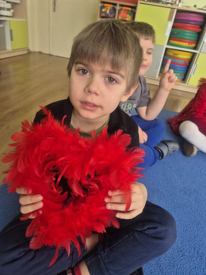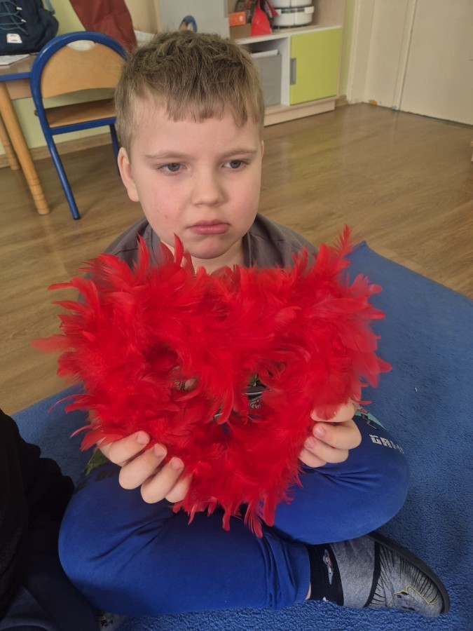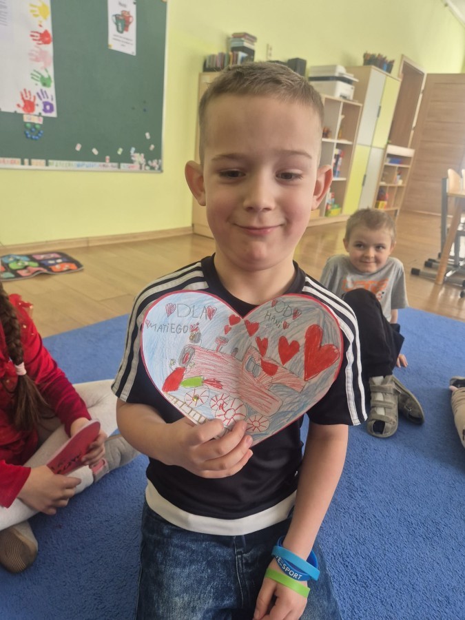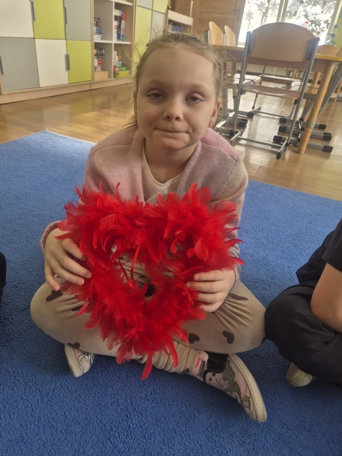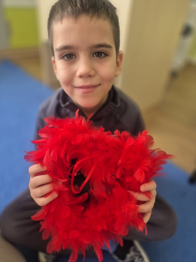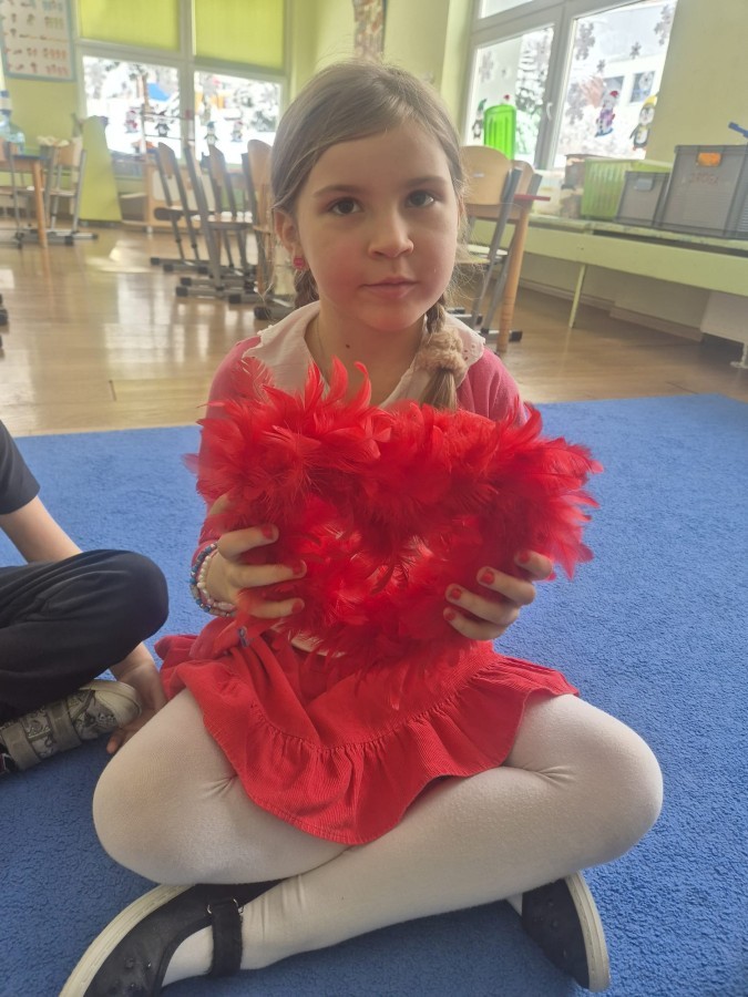 Dzień Świętego Walentego w naszej grupie upłynął w bardzo ciepłej i radosnej atmosferze. Rozpoczęliśmy od rozmowy o miłości – dzieci opowiadały, z czym kojarzy im się to wyjątkowe uczucie. Najczęściej pojawiały się odpowiedzi: serce, mama, tata, rodzeństwo, przytulanie, przyjaźń i dobroć. Rozmawialiśmy o tym, od kogo czujemy miłość i komu sami ją okazujemy. To była piękna