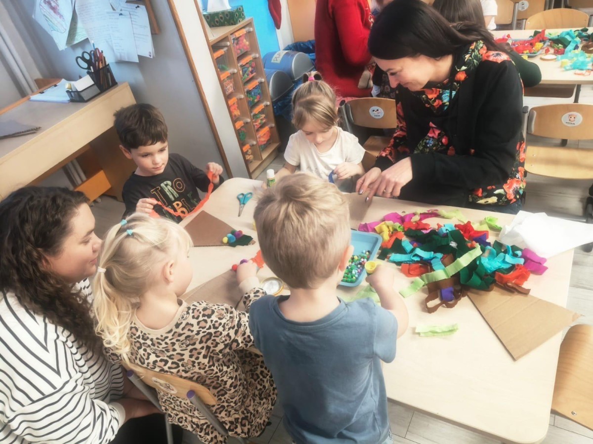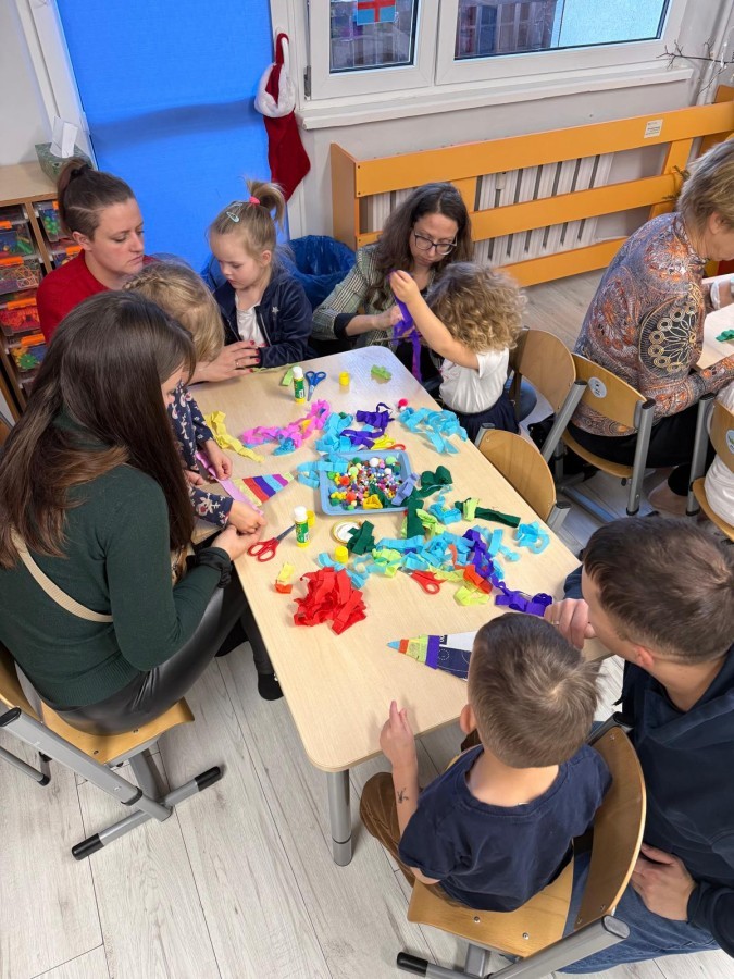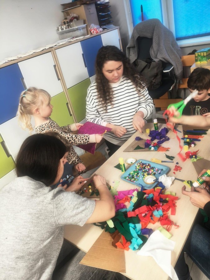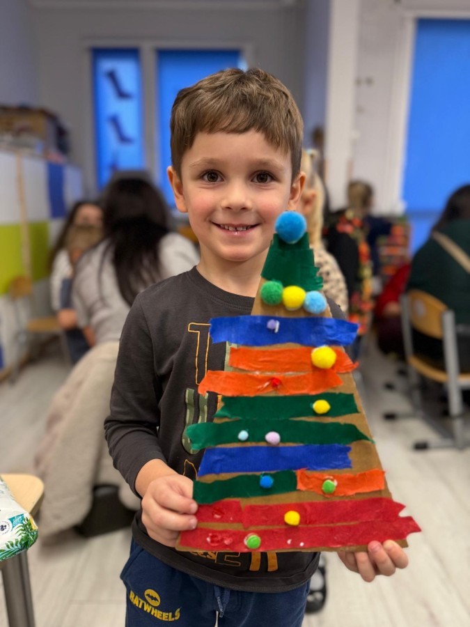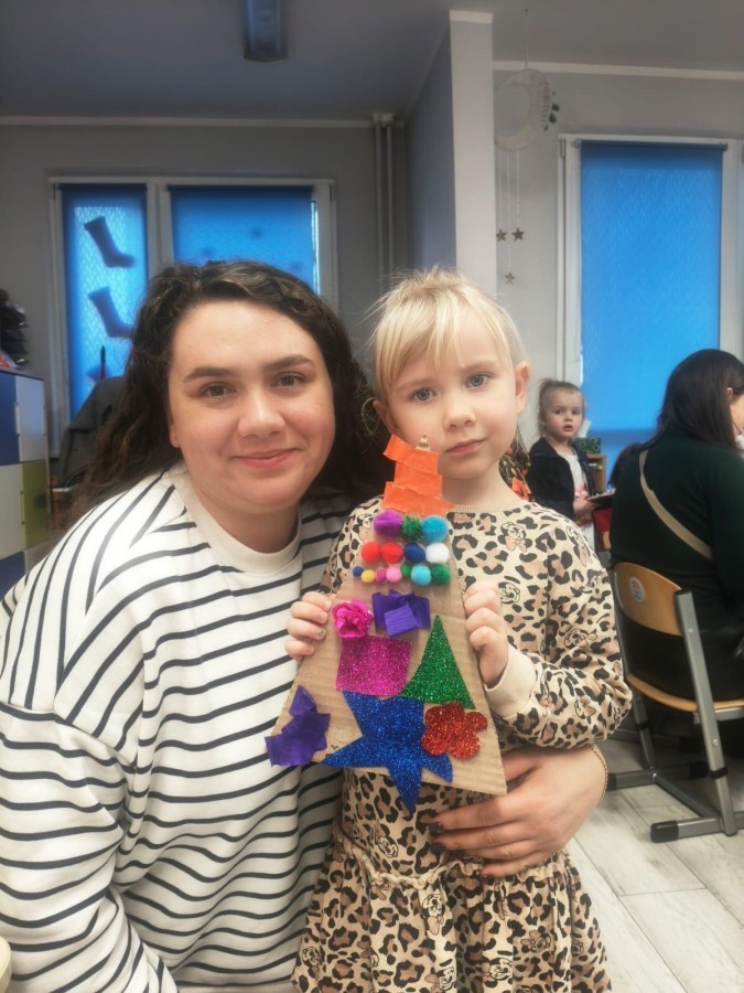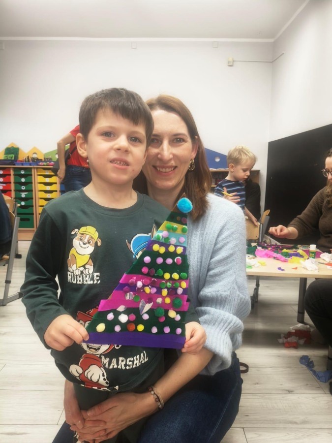 Podczas świątecznych warsztatów w naszym przedszkolu dzieci wraz z rodzicami wspólnie spędziły radosny, twórczy czas. Uczestnicy z wielkim zaangażowaniem tworzyli papierowe choinki, wykorzystując kolorową bibułę, pompony oraz kolorowy papier. Warsztaty były okazją do rozwijania wyobraźni, zdolności manualnych oraz do wzmacniania więzi rodzinnych. Powstałe prace wprowadziły wszystkich w świąteczny nastrój i stały się piękną ozdobą w domach.