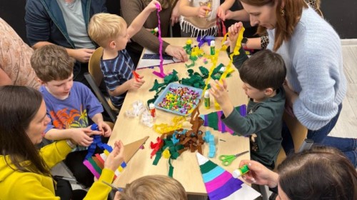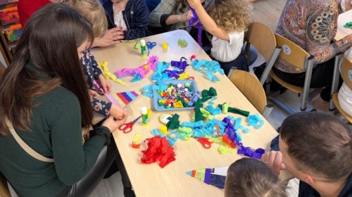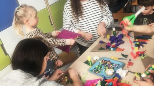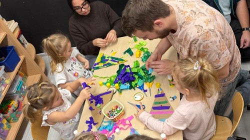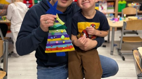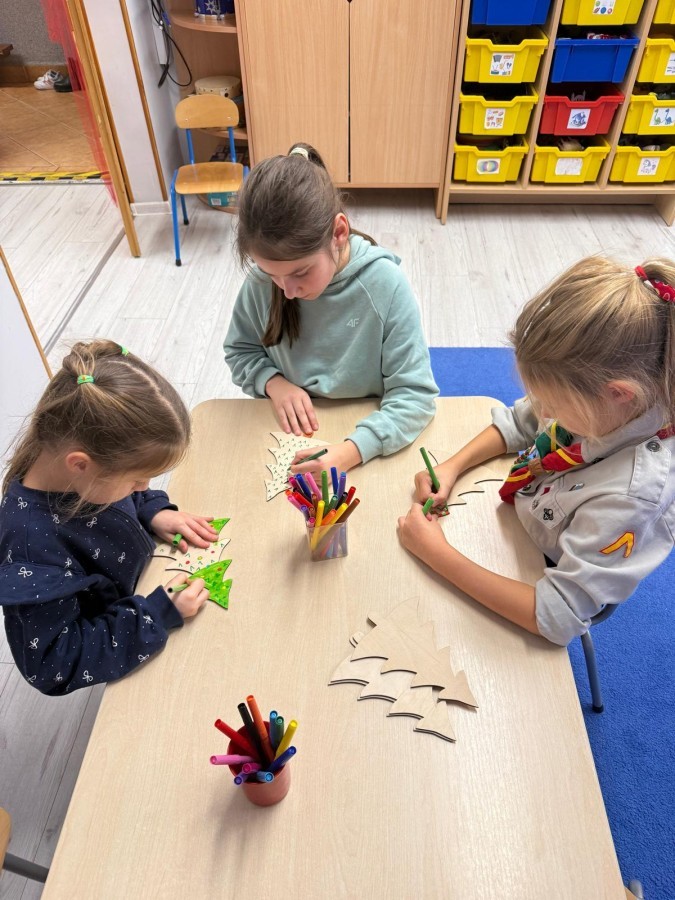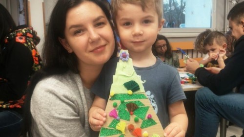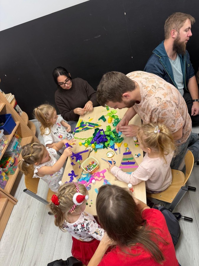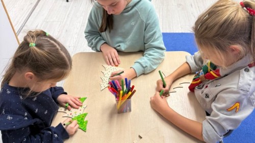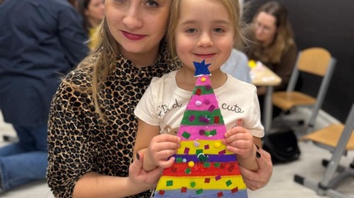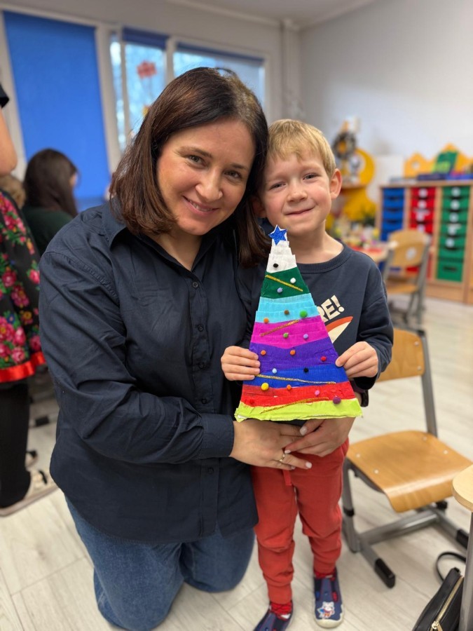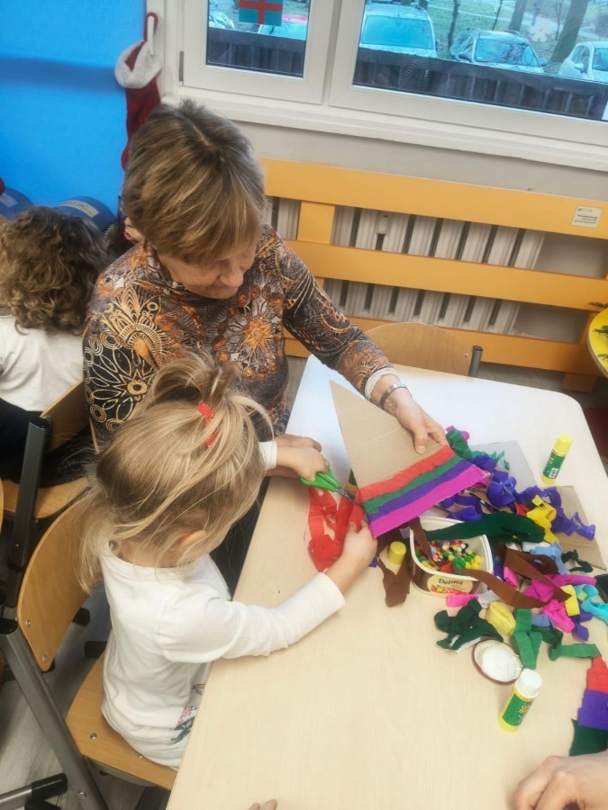 Podczas świątecznych warsztatów w naszym przedszkolu dzieci wraz z rodzicami wspólnie spędziły radosny, twórczy czas. Uczestnicy z wielkim zaangażowaniem tworzyli papierowe choinki, wykorzystując kolorową bibułę, pompony oraz kolorowy papier. Warsztaty były okazją do rozwijania wyobraźni, zdolności manualnych oraz do wzmacniania więzi rodzinnych. Powstałe prace wprowadziły wszystkich w świąteczny nastrój i stały się piękną ozdobą w domach.