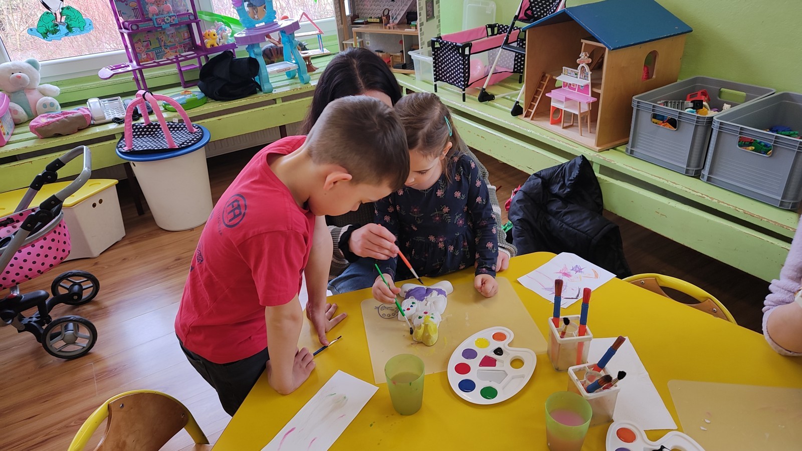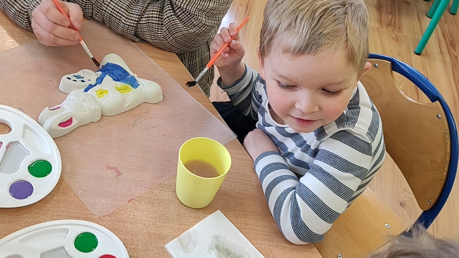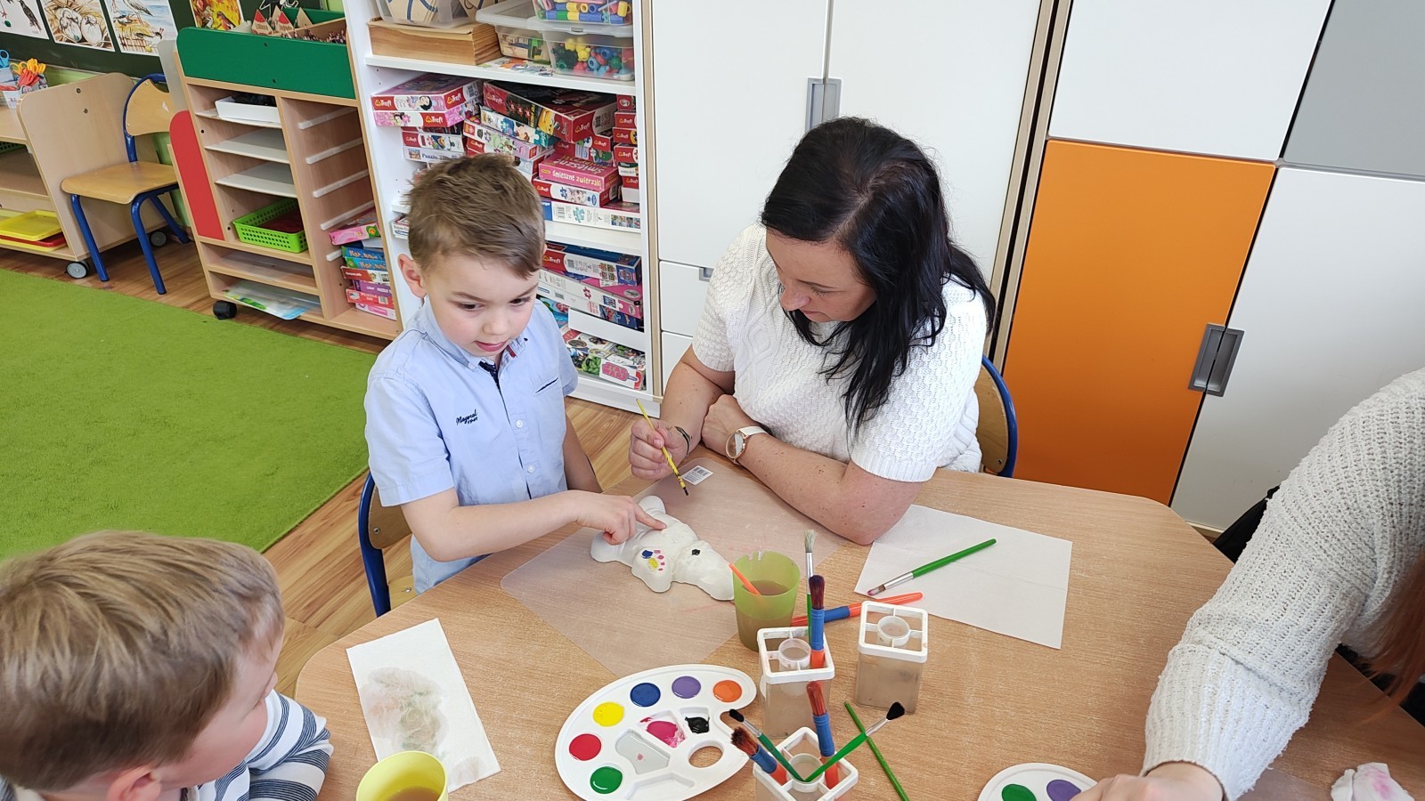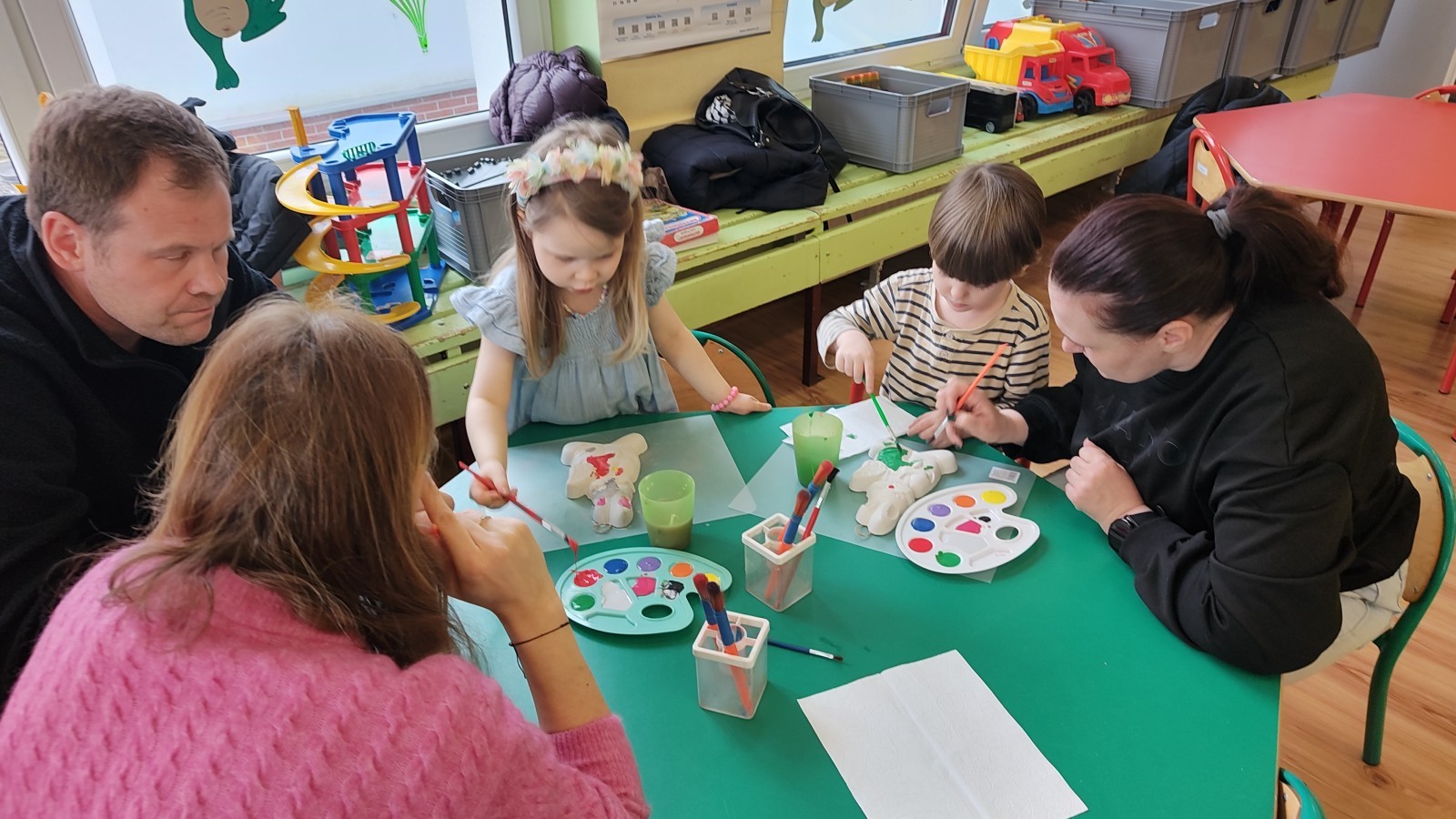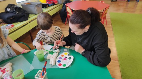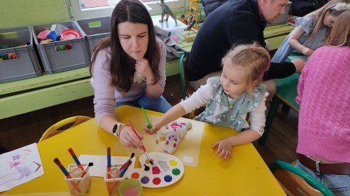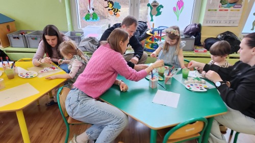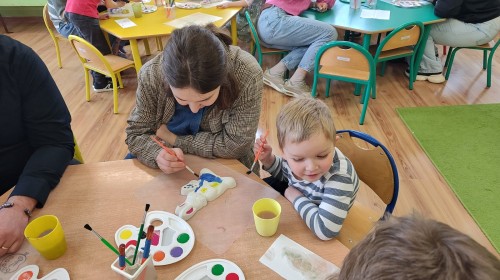 Koniec marca to czas na świąteczne przygotowania, które rozpoczęliśmy od zorganizowania wielkanocnych warsztatów z rodzicami. Było to fantastyczne, pełne energii popołudnie. Spotkanie z rodzicami to nie tylko zabawa, ale przede wszystkim bezcenny czas wspólnie spędzony. W naszym gronie poczuliśmy prawdziwą magię nadchodzących świąt! Zabawa i wielkanocne zagadki z nagrodami wywołały mnóstwo śmiechu i zdrowej rywalizacji. Wspólne warsztaty z rodzicami obfitowały w radosną aktywność i twórczą pracę. Centralnym punktem spotkania było tworzenie ozdób. Powstały piękne kolorowe zajączki, a nasi artyści wykazali się ogromną precyzją. Widok rodziców angażujących się w malowanie gipsu ramię w ramię ze swoimi pociechami to najlepszy dowód na to, że kreatywność nie zna wieku! Gorące podziękowania wszystkim Rodzicom za uczestnictwo w wielkanocnych warsztatach oraz za każdy uśmiech, wspólną zabawę i pomoc w wyczarowaniu przedświątecznej atmosfery.