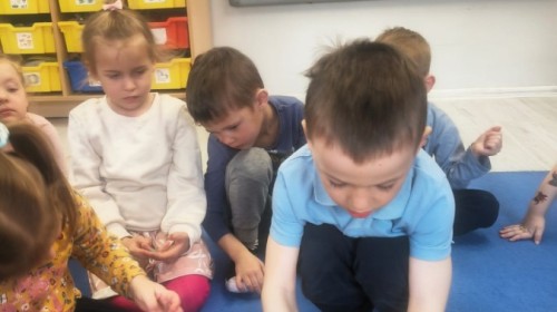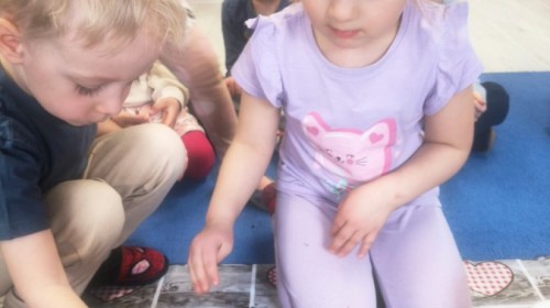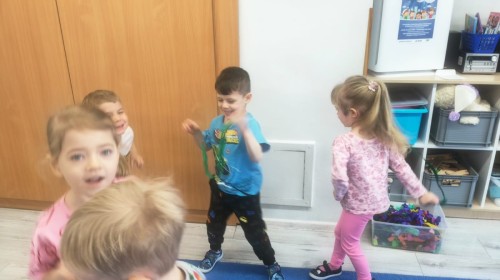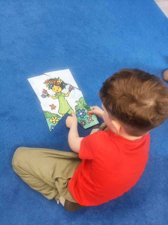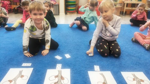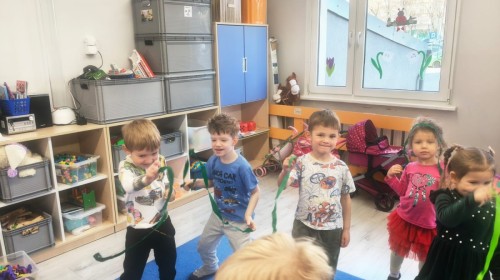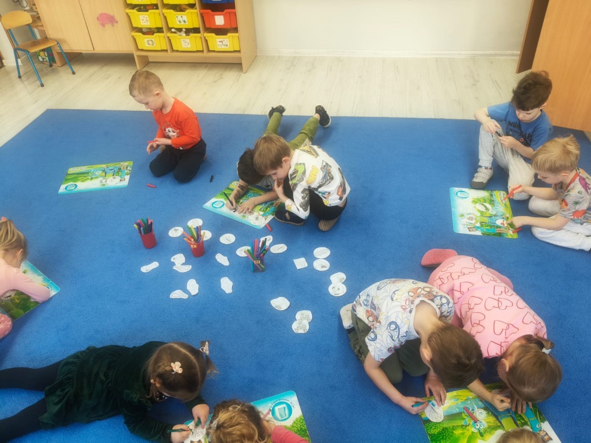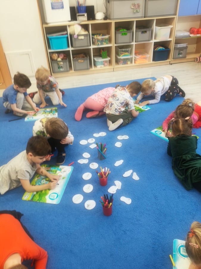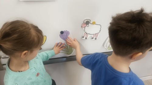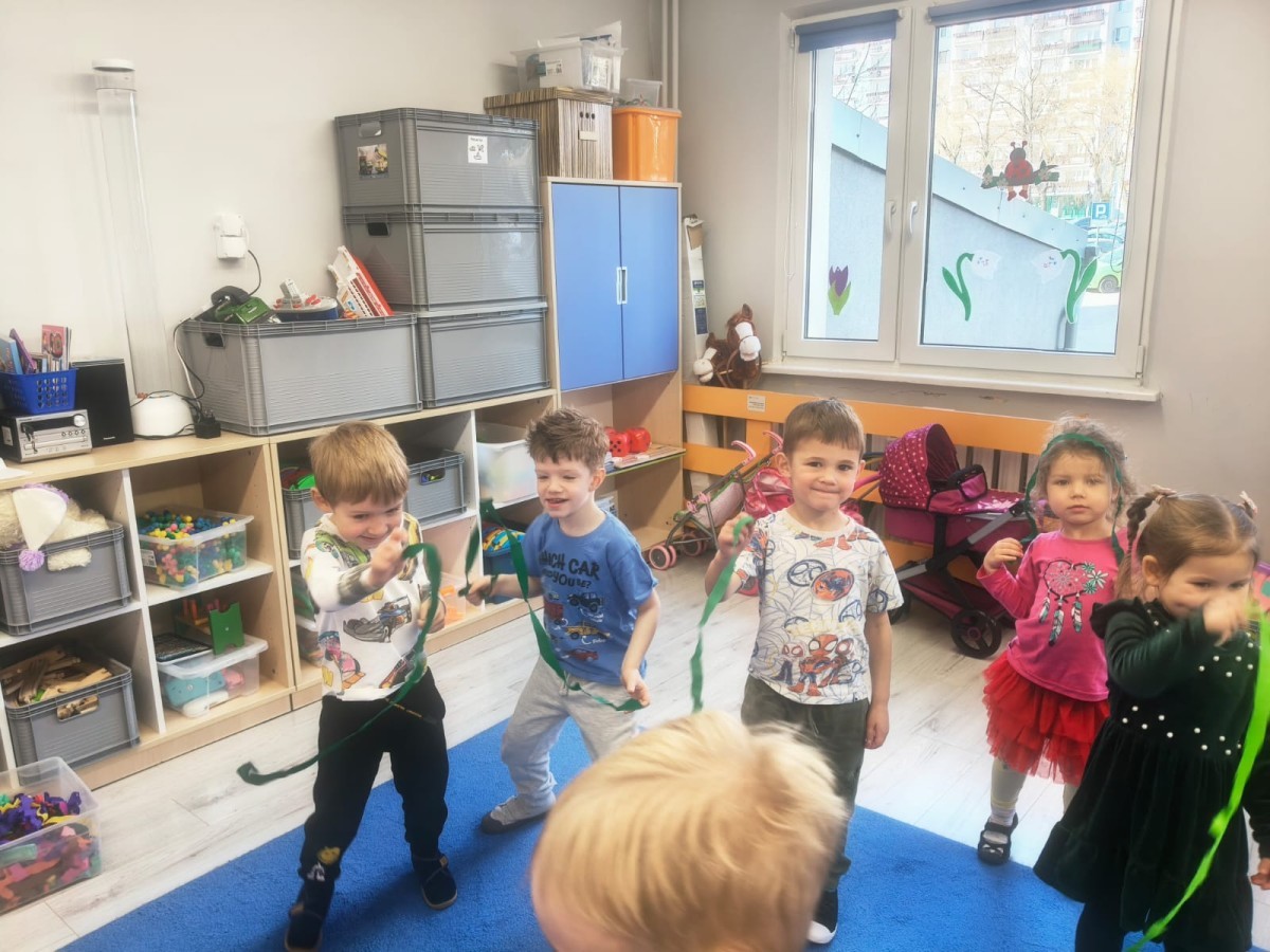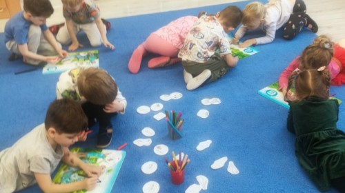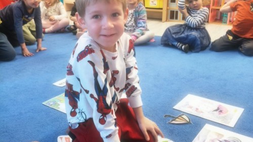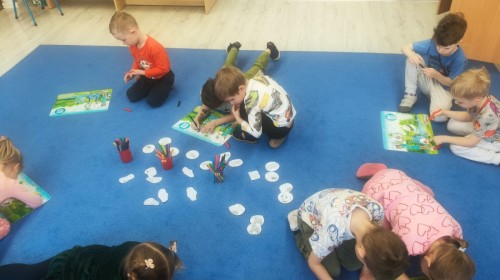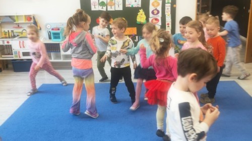 Na wiosnę czeka każdy, i duży, i mały. Dlatego podczas różnych zajęć pojawiały się w przedszkolu tematy wiosenne. Dzieci z radością poznawały pierwsze zwiastuny wiosny, poszukiwały jej w sali, na spacerach. Rozwiązywały zagadki, rebusy, liczyły kwiaty -