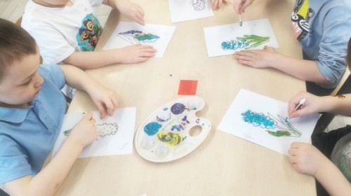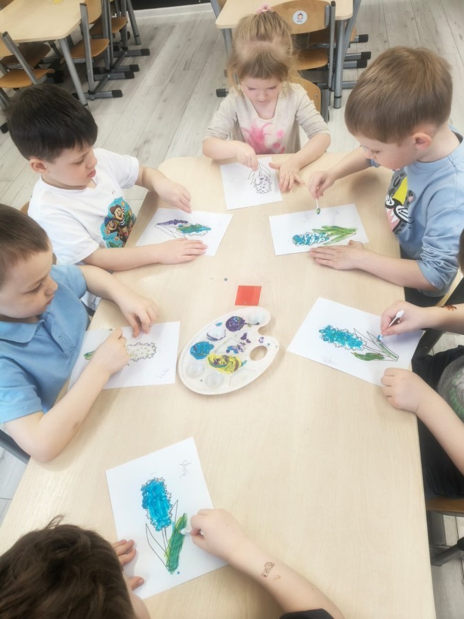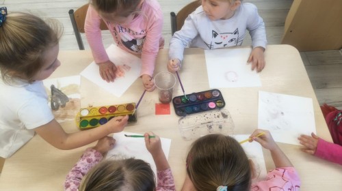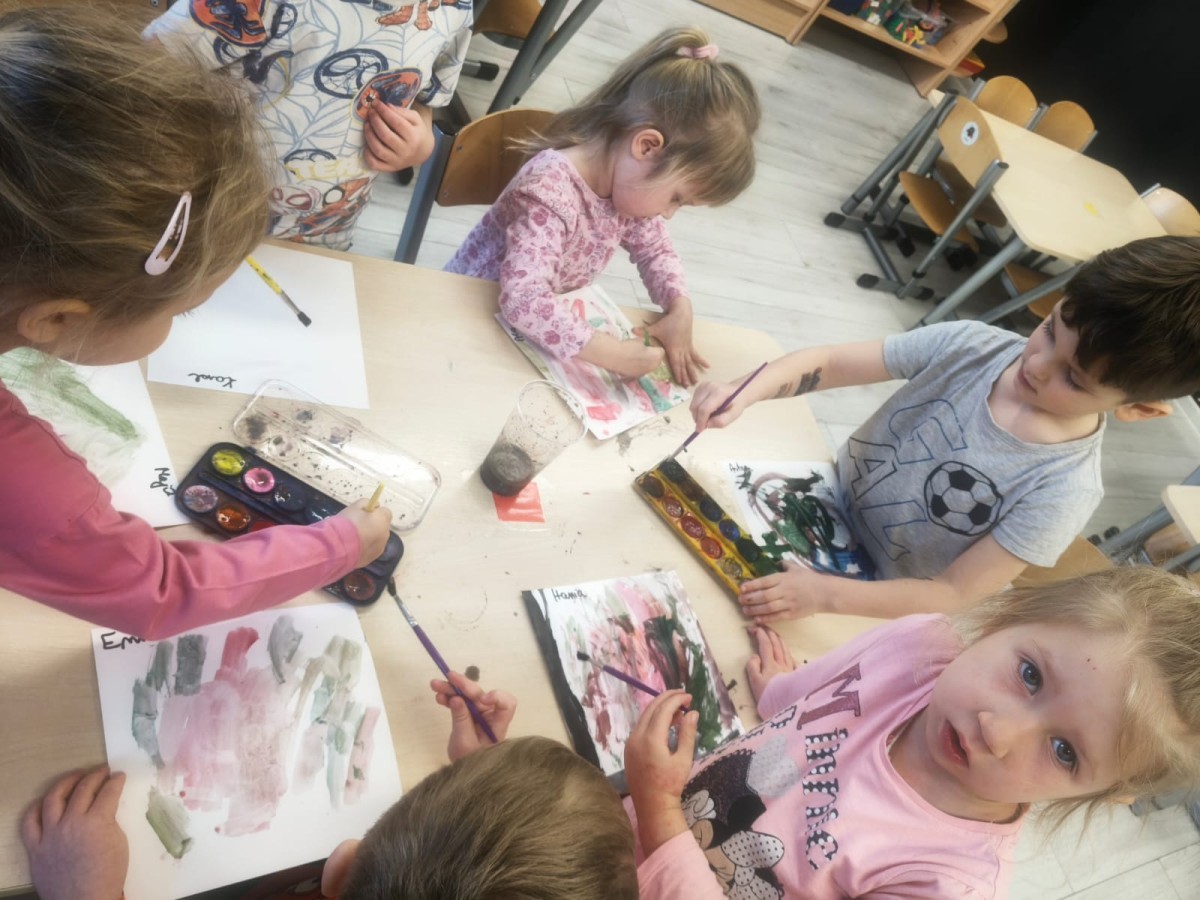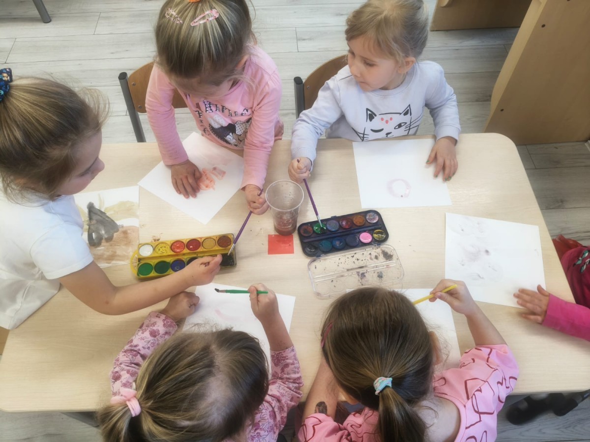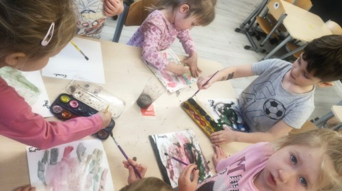 a wszystko po to, aby wykorzystać swoją wiedzę do stworzenia różnorodnych prac plastycznych. Największym wyzwaniem było malowanie farbami całkowicie własnej pracy na temat wiosny. Czysta kartka, pędzel i własne pomysły i wyobrażenia