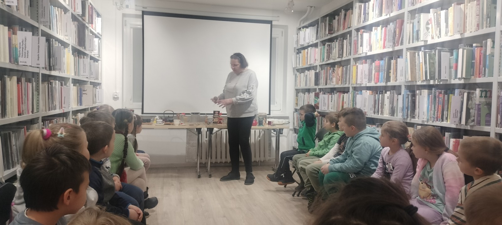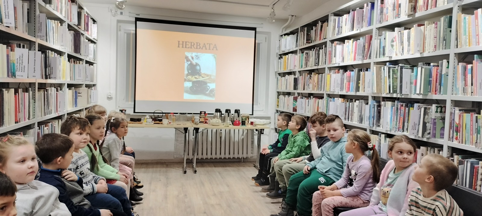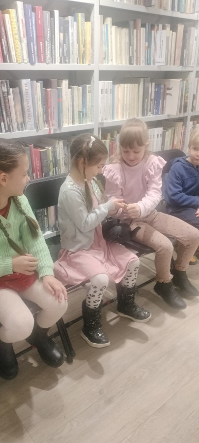 27 stycznia grupa Wilki wybrała się na wycieczkę do Książnicy Beskidzkiej na osiedlu Karpackim. Dzieci zostały serdecznie powitane przez panią, która przygotowała dla nich bardzo ciekawe zajęcia. Podczas spotkania przedszkolaki dowiedziały się, czym jest herbata, skąd pochodzi oraz w jakich krajach jest uprawiana. Pani opowiadała o różnych rodzajach herbat i przedstawiała informacje na rzutniku ,aby dzieci mogły lepiej je zapamiętać. Przedszkolaki poznały także narzędzia potrzebne do parzenia herbaty, takie jak czajnik, czarka ,imbryk czy filiżanki, oraz sposoby jej podawania. Dzieci z dużym zainteresowaniem słuchały opowieści, chętnie odpowiadały na pytania i dzieliły się swoimi doświadczeniami. Wyjście do biblioteki było dla dzieci bardzo atrakcyjne i pouczające. Spotkanie wzbogaciło ich wiedzę, rozbudziło ciekawość świata oraz było miłym i wartościowym doświadczeniem.