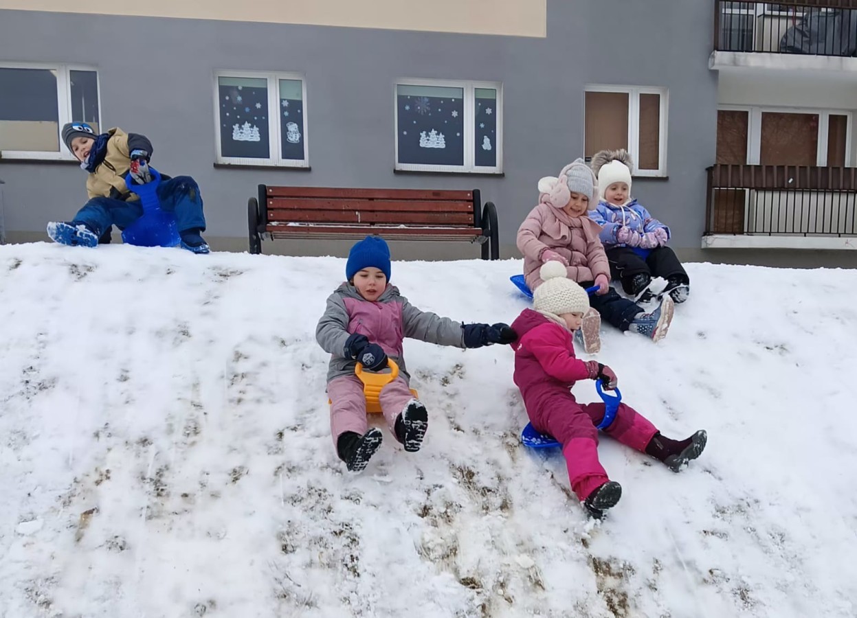 Grupa "Jeżyków" postanowiła wykorzystać piękną, zimową aurę i wybrała się na wspólne śnieżne zabawy. Już od pierwszych chwil nie brakowało uśmiechów i pozytywnej energii. Skrzypiący pod butami śnieg zachęcał do ruchu, a wspólne zjeżdżanie na jabłuszkach dostarczyło wszystkim mnóstwo emocji i radości.
