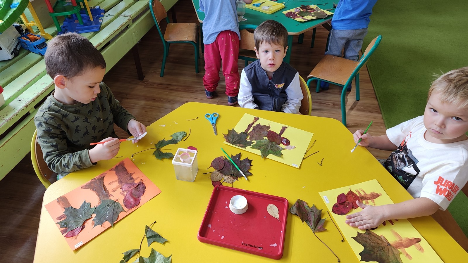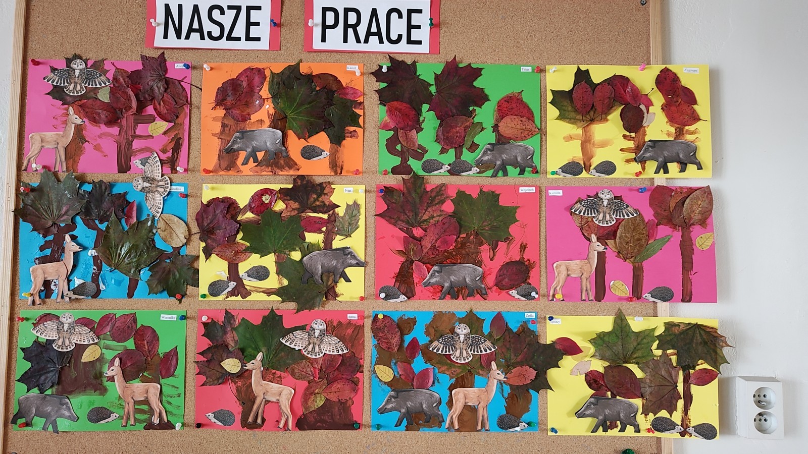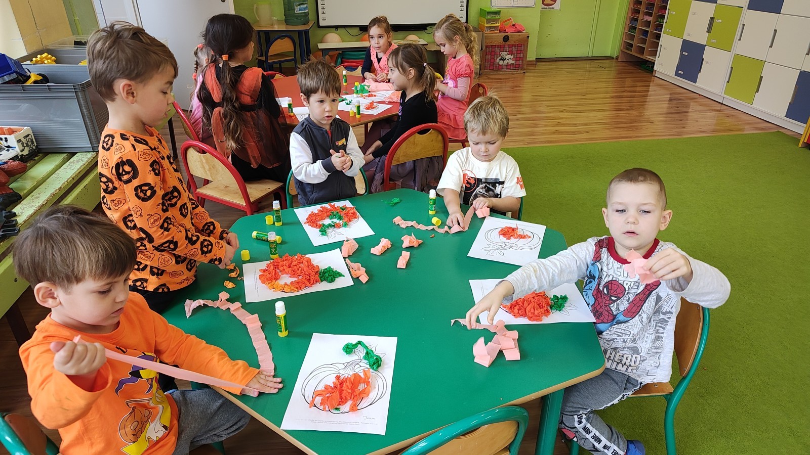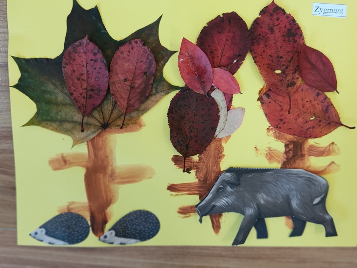 Drodzy rodzice, tak spędzaliśmy czas przez ostatni miesiąc. Dużo rozmawialiśmy o kolorowych liściach a także o jesiennej pogodzie. Braliśmy udział w Uroczystości zorganizowanej z okazji Święta Niepodległości, która miała na celu kształtowanie postaw patriotycznych. W naszej sali jak i w zajęciach plastycznych dominowała kolorystyka biało czerwona. Poznaliśmy nasze symbole narodowe, wykonaliśmy flagi oraz kotyliony, które podkreślały podniosłą atmosferę. W listopadzie dzieci dowiedziały się, które zwierzęta przygotowują się do zimowego snu (niedźwiedzie, jeże) i gdzie ją spędzają – poznały słownictwo związane z tą tematyką (gawra, norka, kotlinka,). Poznały też zwierzęta, które są aktywne przez całą zimę, a wcześniej przygotowują się do zimy, robiąc zapasy (wiewiórka, mysz). Dowiedziały się jak spędzają zimę i czy nie jest im zimno? Poszerzyły wiedzę na temat ptaków, które zostają z nami na zimę i tych, które odlatują do ciepłych krajów, by tam przeczekać najzimniejszą porę roku w Polsce. Utrwaliliśmy naszą wiedzę dotyczącą przygotowania ludzi do zimy. Uczestniliśmy w spotkaniu z policjantem i wiemy jak bezpiecznie przechodzić przez jezdnię. Poznaliśmy niektóre znaki drogowe i sygnalizację świetlną. Znamy już literki Oo, Aa, TT, Mm, Ii, - uczymy się ich rozpoznawania. Poznaliśmy cyfrę 1,2 3,4,5, - utrwalamy ich zapis graficzny. Ćwiczymy zapamiętując kolejne dni tygodnia. Mieliśmy wiele okazji na doskonalenie sprawności manualnych, rozwijania zainteresowań i uzdolnień plastycznych oraz możliwości twórczych w trakcie różnorodnych działań plastycznych. Prace nasze zamieściliśmy w naszej galerii do której obejrzenia serdecznie zapraszamy.