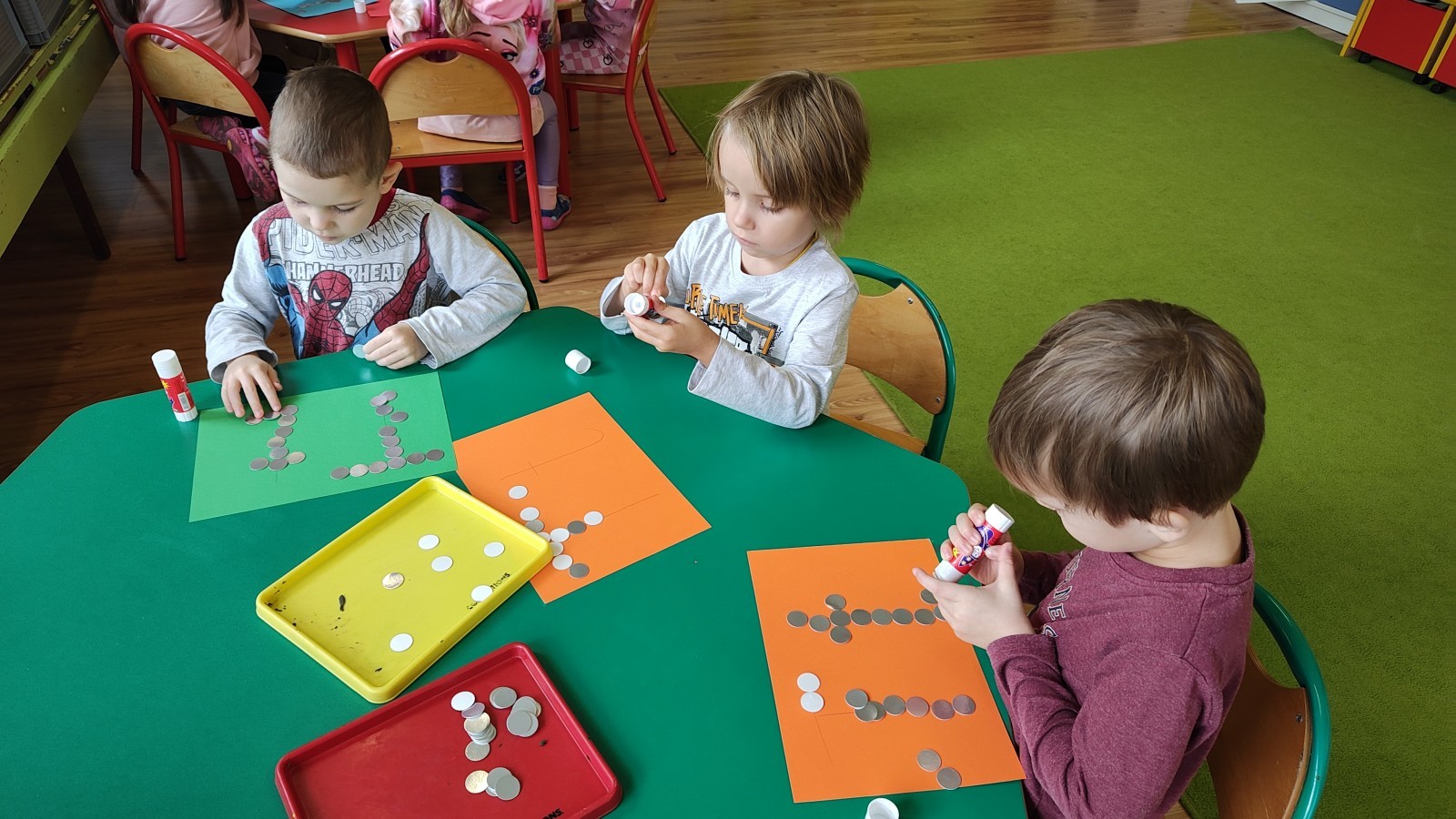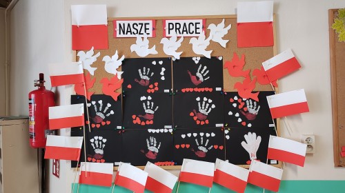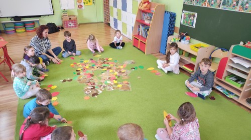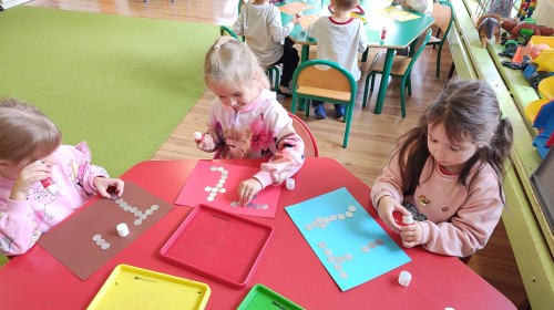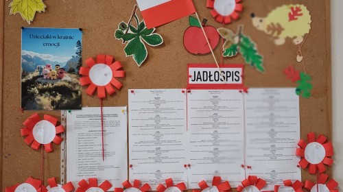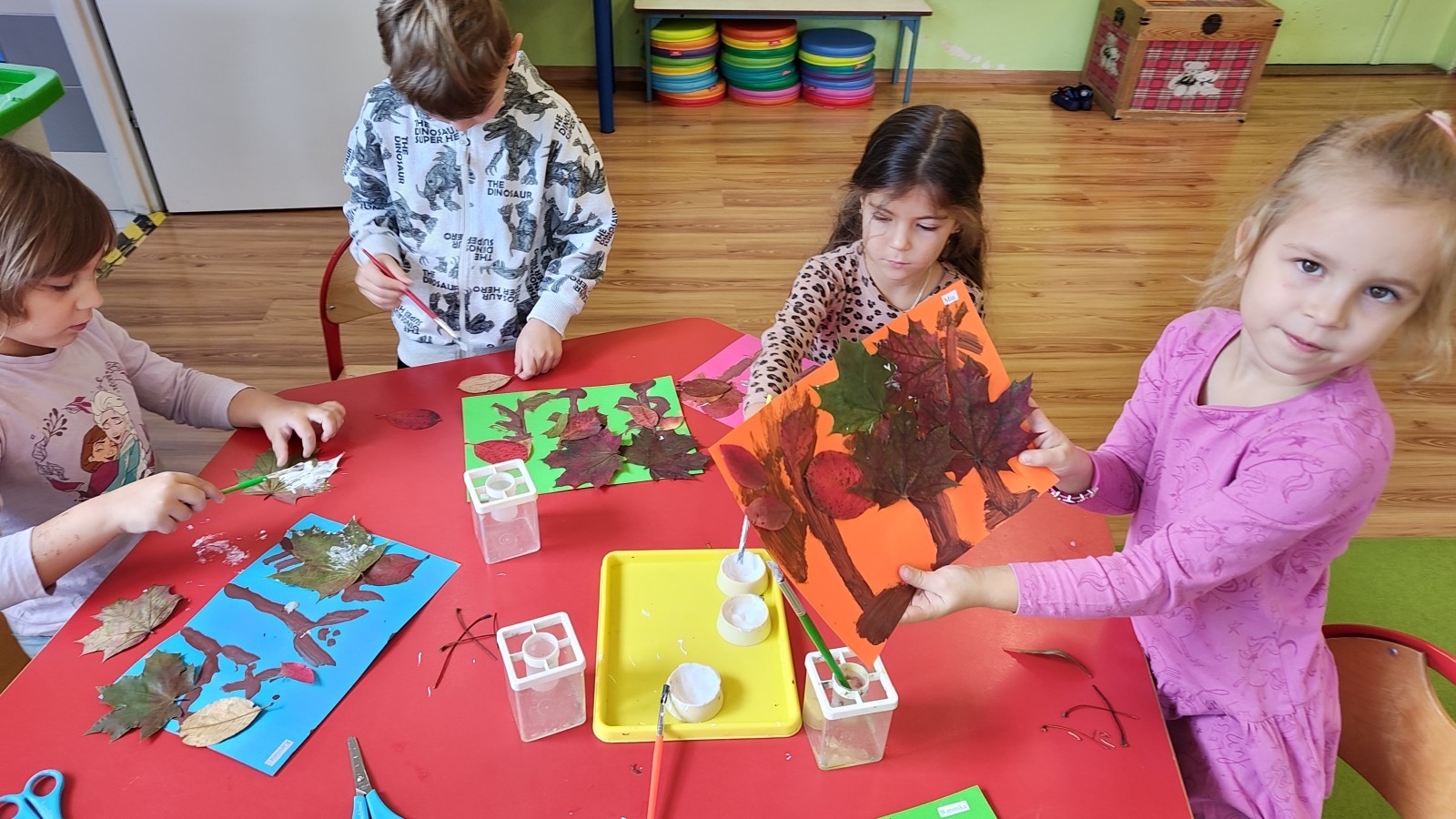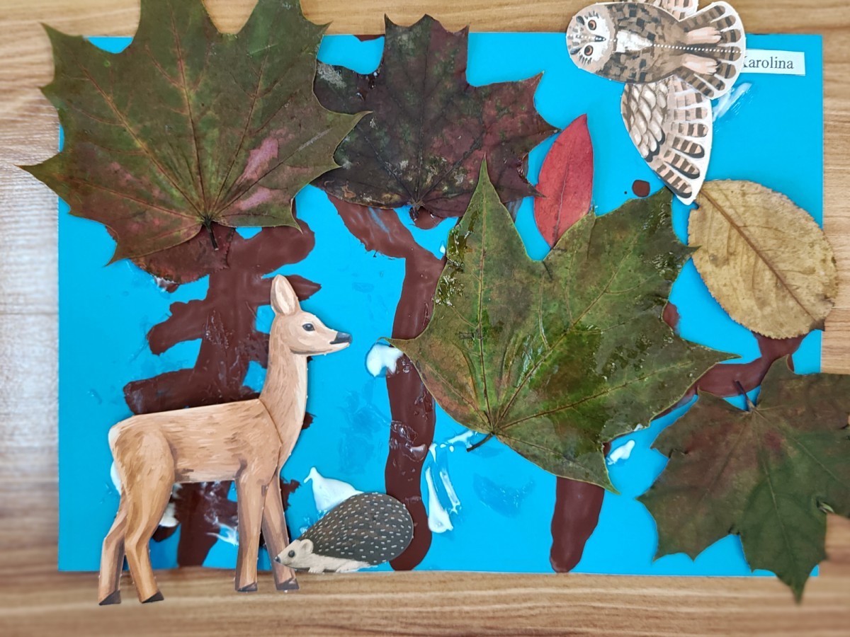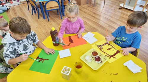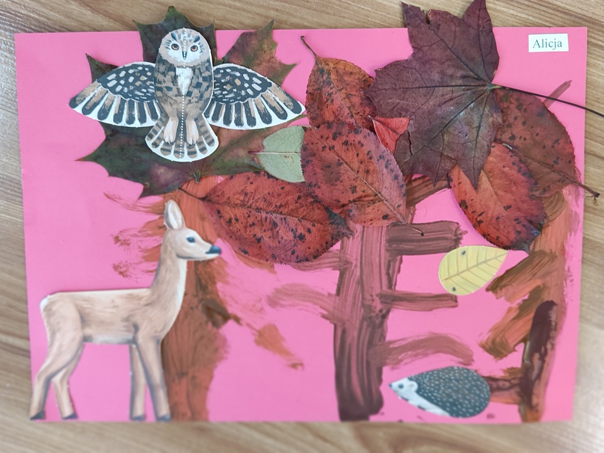 Drodzy rodzice, tak spędzaliśmy czas przez ostatni miesiąc. Dużo rozmawialiśmy o kolorowych liściach a także o jesiennej pogodzie. Braliśmy udział w Uroczystości zorganizowanej z okazji Święta Niepodległości, która miała na celu kształtowanie postaw patriotycznych. W naszej sali jak i w zajęciach plastycznych dominowała kolorystyka biało czerwona. Poznaliśmy nasze symbole narodowe, wykonaliśmy flagi oraz kotyliony, które podkreślały podniosłą atmosferę. W listopadzie dzieci dowiedziały się, które zwierzęta przygotowują się do zimowego snu (niedźwiedzie, jeże) i gdzie ją spędzają – poznały słownictwo związane z tą tematyką (gawra, norka, kotlinka,). Poznały też zwierzęta, które są aktywne przez całą zimę, a wcześniej przygotowują się do zimy, robiąc zapasy (wiewiórka, mysz). Dowiedziały się jak spędzają zimę i czy nie jest im zimno? Poszerzyły wiedzę na temat ptaków, które zostają z nami na zimę i tych, które odlatują do ciepłych krajów, by tam przeczekać najzimniejszą porę roku w Polsce. Utrwaliliśmy naszą wiedzę dotyczącą przygotowania ludzi do zimy. Uczestniliśmy w spotkaniu z policjantem i wiemy jak bezpiecznie przechodzić przez jezdnię. Poznaliśmy niektóre znaki drogowe i sygnalizację świetlną. Znamy już literki Oo, Aa, TT, Mm, Ii, - uczymy się ich rozpoznawania. Poznaliśmy cyfrę 1,2 3,4,5, - utrwalamy ich zapis graficzny. Ćwiczymy zapamiętując kolejne dni tygodnia. Mieliśmy wiele okazji na doskonalenie sprawności manualnych, rozwijania zainteresowań i uzdolnień plastycznych oraz możliwości twórczych w trakcie różnorodnych działań plastycznych. Prace nasze zamieściliśmy w naszej galerii do której obejrzenia serdecznie zapraszamy.