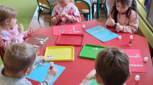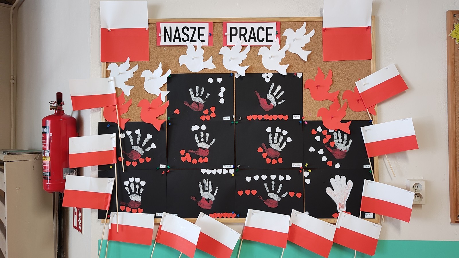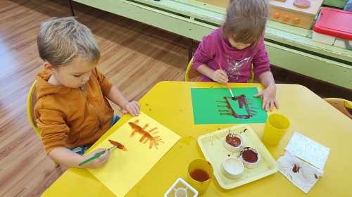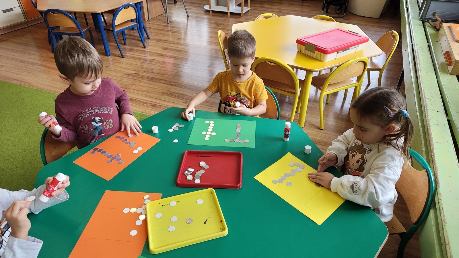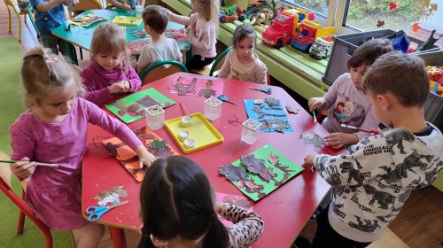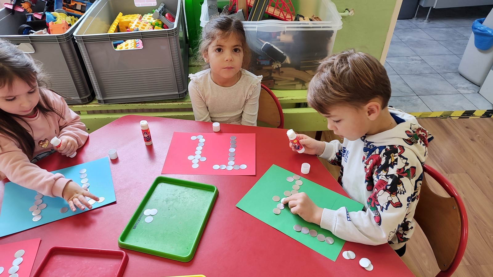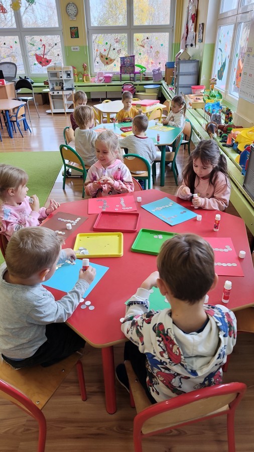 Drodzy rodzice, tak spędzaliśmy czas przez ostatni miesiąc. Dużo rozmawialiśmy o kolorowych liściach a także o jesiennej pogodzie. Braliśmy udział w Uroczystości zorganizowanej z okazji Święta Niepodległości, która miała na celu kształtowanie postaw patriotycznych. W naszej sali jak i w zajęciach plastycznych dominowała kolorystyka biało czerwona. Poznaliśmy nasze symbole narodowe, wykonaliśmy flagi oraz kotyliony, które podkreślały podniosłą atmosferę. W listopadzie dzieci dowiedziały się, które zwierzęta przygotowują się do zimowego snu (niedźwiedzie, jeże) i gdzie ją spędzają – poznały słownictwo związane z tą tematyką (gawra, norka, kotlinka,). Poznały też zwierzęta, które są aktywne przez całą zimę, a wcześniej przygotowują się do zimy, robiąc zapasy (wiewiórka, mysz). Dowiedziały się jak spędzają zimę i czy nie jest im zimno? Poszerzyły wiedzę na temat ptaków, które zostają z nami na zimę i tych, które odlatują do ciepłych krajów, by tam przeczekać najzimniejszą porę roku w Polsce. Utrwaliliśmy naszą wiedzę dotyczącą przygotowania ludzi do zimy. Uczestniliśmy w spotkaniu z policjantem i wiemy jak bezpiecznie przechodzić przez jezdnię. Poznaliśmy niektóre znaki drogowe i sygnalizację świetlną. Znamy już literki Oo, Aa, TT, Mm, Ii, - uczymy się ich rozpoznawania. Poznaliśmy cyfrę 1,2 3,4,5, - utrwalamy ich zapis graficzny. Ćwiczymy zapamiętując kolejne dni tygodnia. Mieliśmy wiele okazji na doskonalenie sprawności manualnych, rozwijania zainteresowań i uzdolnień plastycznych oraz możliwości twórczych w trakcie różnorodnych działań plastycznych. Prace nasze zamieściliśmy w naszej galerii do której obejrzenia serdecznie zapraszamy.