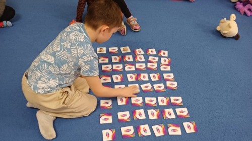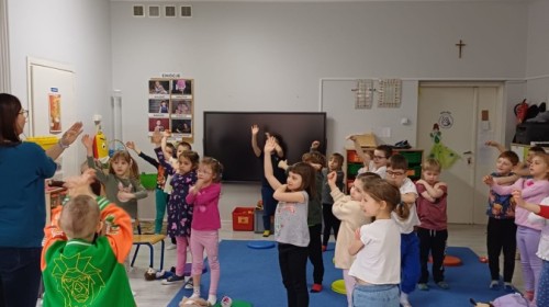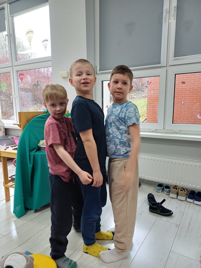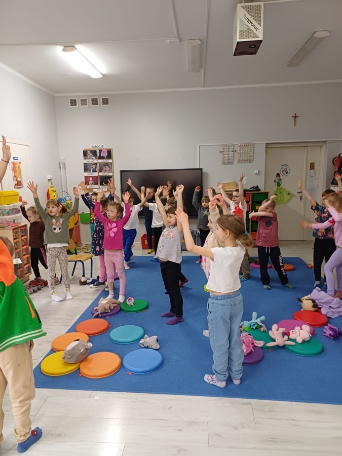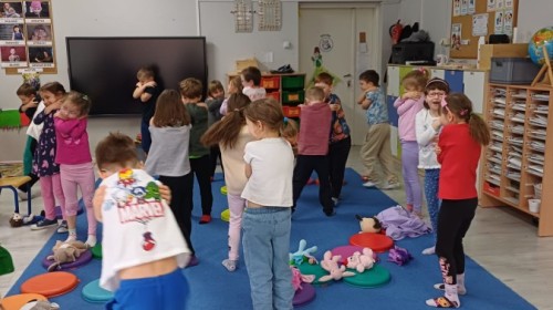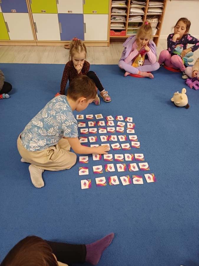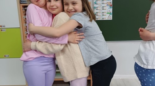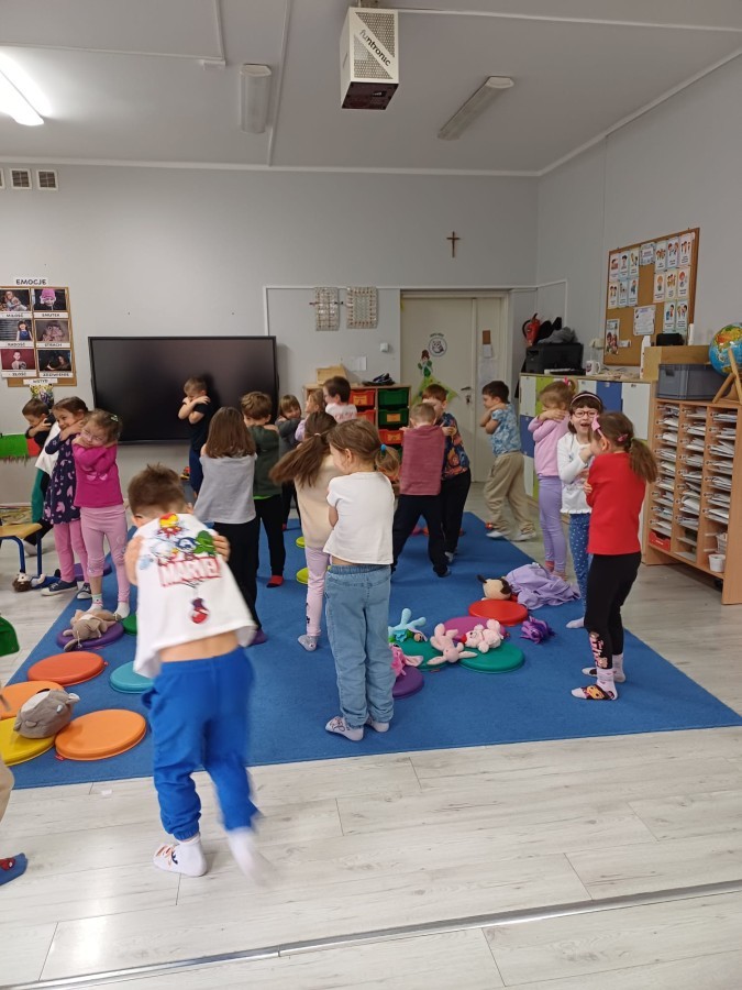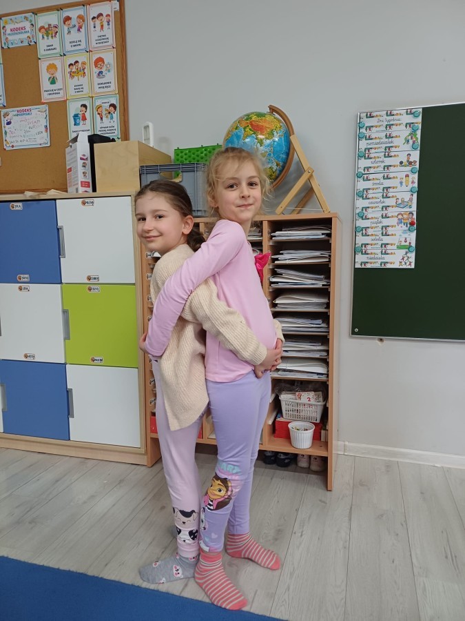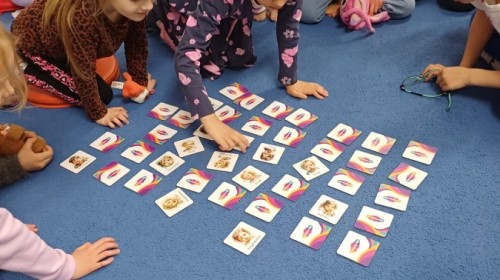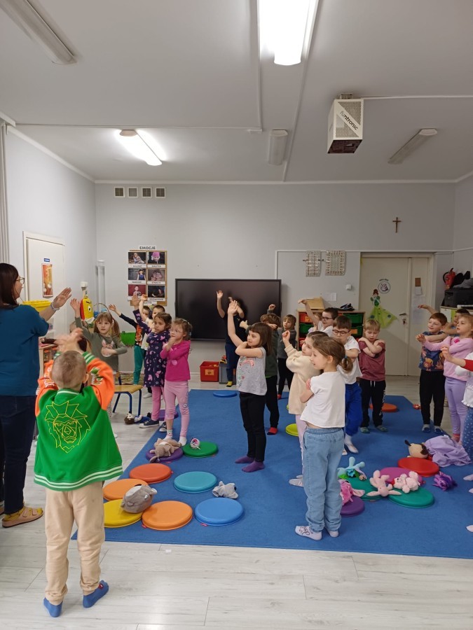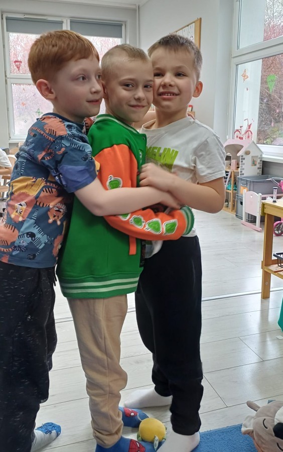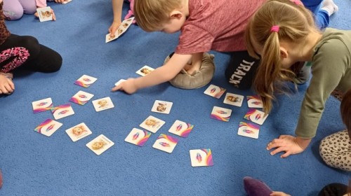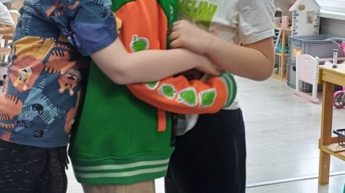 W piątek 27 marca w grupie Sówek odbyło się spotkanie z Panią Kasią- naszym przedszkolnym Pedagogiem Specjalnym. Zajęcia, jak zwykle dotyczyły ważnych w życiu człowieka tematów z obszaru emocji. Tym razem Sówki zgłębiały treści dotyczące przytulania. Wspólnie zastanawiały się na tym, jak bardzo potrzeby to gest- zarówno jego doświadczanie, jak i darowanie. Próbowały odpowiedzieć sobie na trudne pytania, związane z tym tematem, jak na przykład: "Czy zawsze można przytulić, nawet, gdy ktoś nie ma na to ochoty?" Pomocną w tym temacie okazała się książka "Kto przytuli Misia Tulisia?" Daviada Mellinga, której dzieci wysłuchały na początku zajęć. Na podstawie jej treści mogły zbudować swoje wypowiedzi, choć penie własne doświadczenie w tym temacie również stanowiło źródło ich jakże cennych przemyśleń. Po tej części, zajęcia nabrały dynamizmu dzięki zaproponowanym w publikacji ćwiczeniom - ku wielkiej radości dzieci mogły się przytulić "na kanapkę", tyłem, a nawet całą grupą- zachowując przy tym delikatność i uwzględniając potrzeby innych osób. Na koniec dzieci wzięły udział w grupowej grze "Memory", odkrywając karty z pięknymi ilustracjami przedstawiającymi różne emocje, Dzięki temu ćwiczeniu poszerzyły swoją widzę na temat ich nazywania, oraz rozpoznawania w mimice twarzy drugiego człowieka.