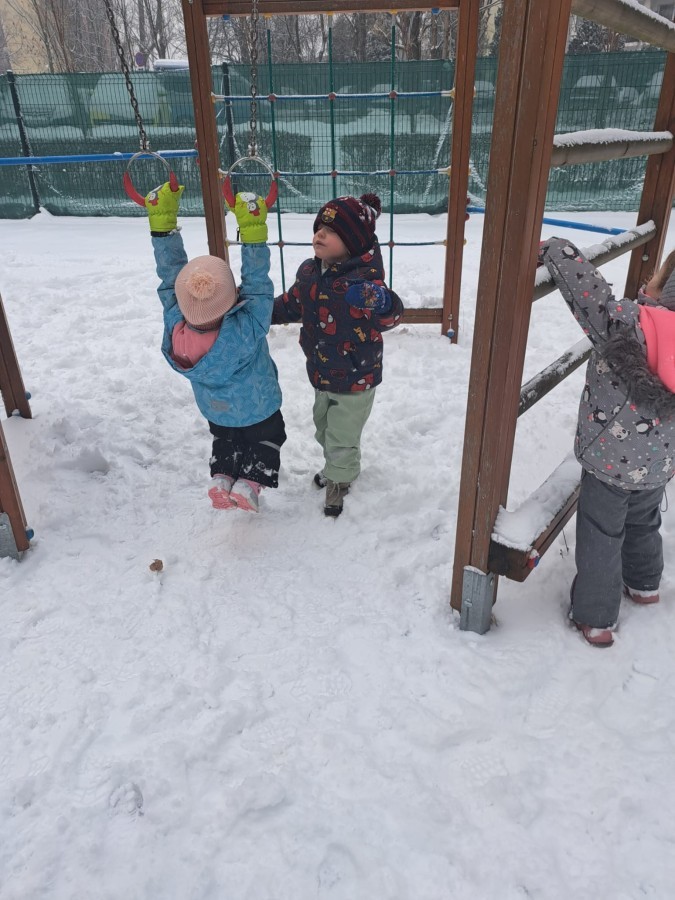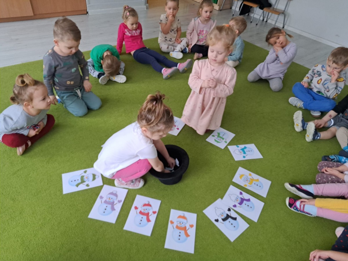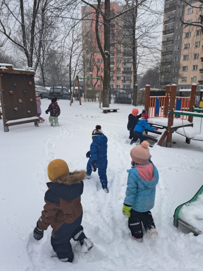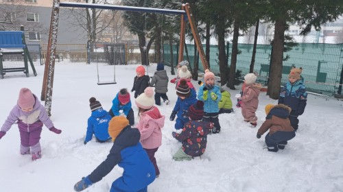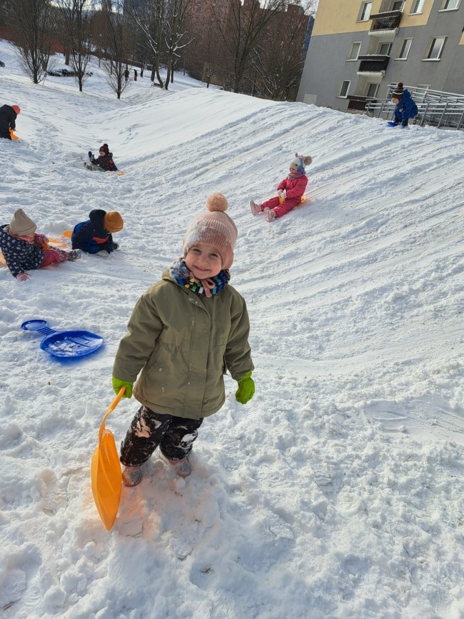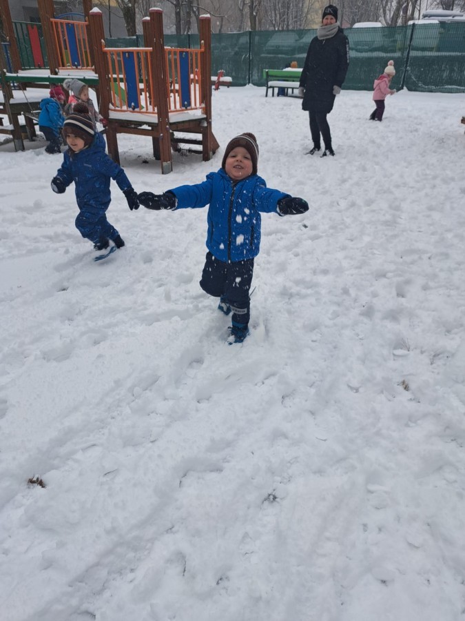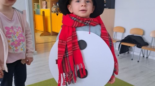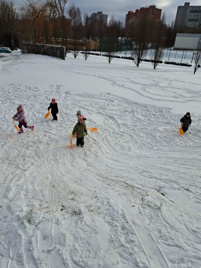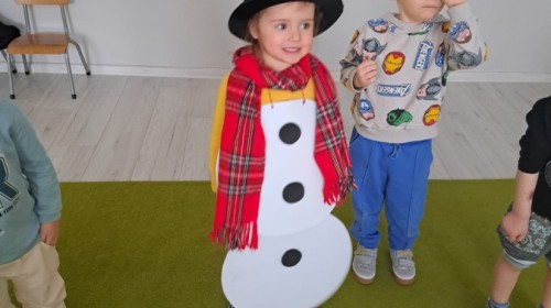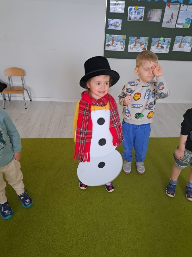 W drugim tygodniu stycznia Liski uczestniczyły w zabawach na śniegu, zjazdach na ślizgaczach. Aktywności ruchowe sprzyjały rozwojowi sprawności fizycznej i koordynacji ruchowej. Dodatkowo dzieci z Panią Gabrysią na zajęciach z języka angielskiego utrwalały nazwy kolorów nazywając kolory czapek bałwanków, łącząc naukę z radosną zabawą.