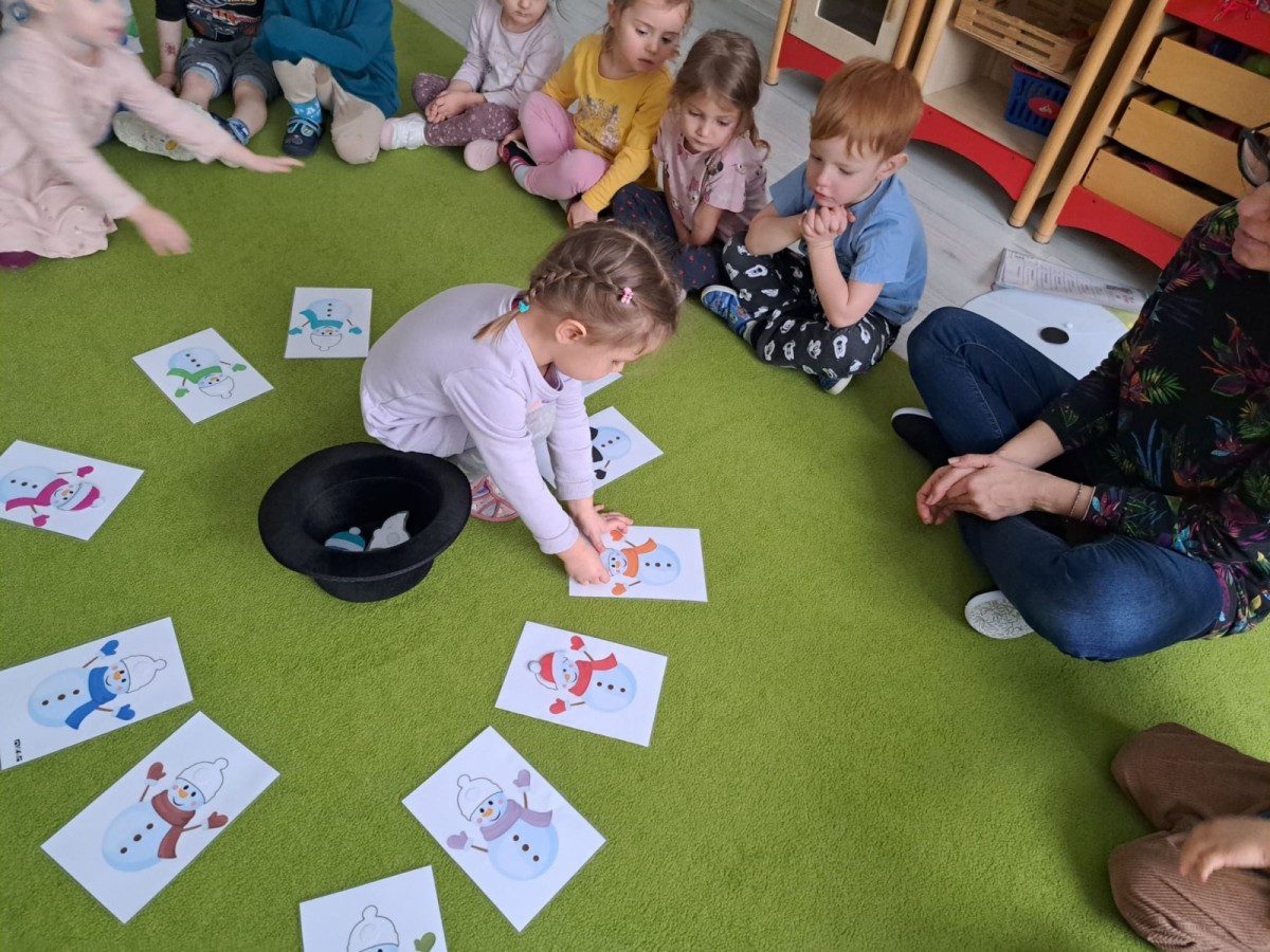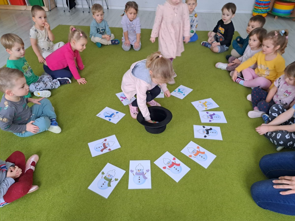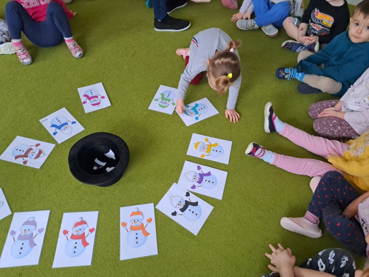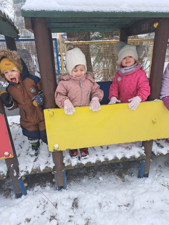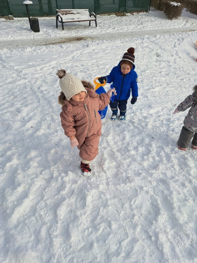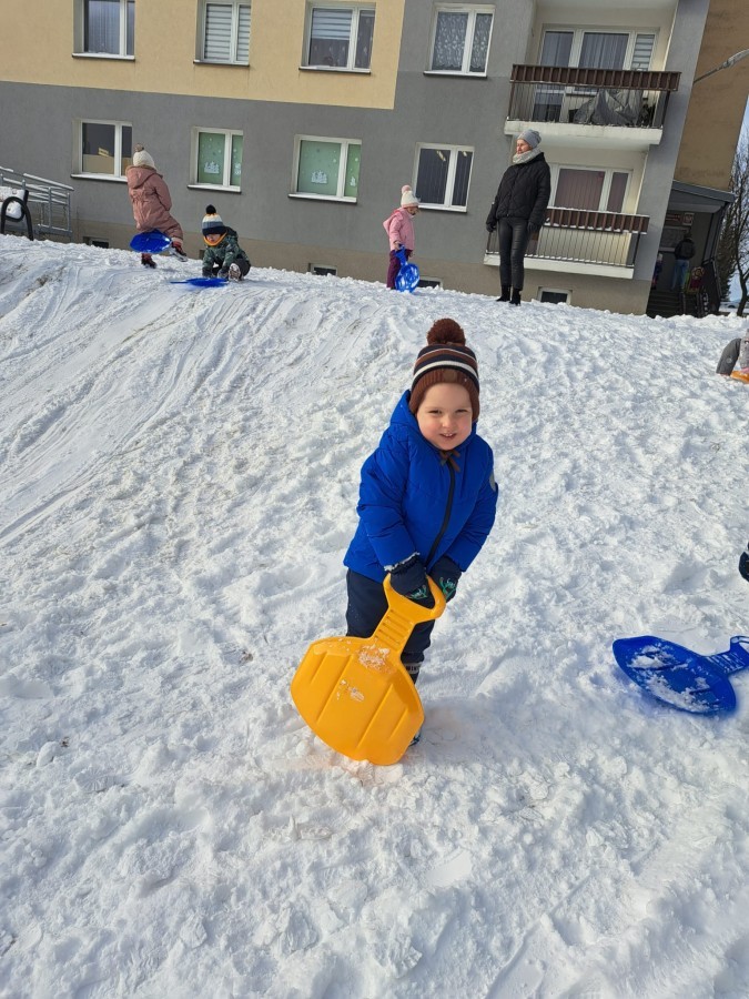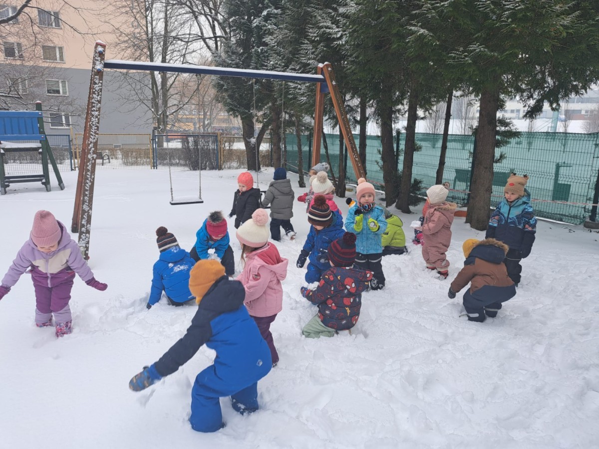 W drugim tygodniu stycznia Liski uczestniczyły w zabawach na śniegu, zjazdach na ślizgaczach. Aktywności ruchowe sprzyjały rozwojowi sprawności fizycznej i koordynacji ruchowej. Dodatkowo dzieci z Panią Gabrysią na zajęciach z języka angielskiego utrwalały nazwy kolorów nazywając kolory czapek bałwanków, łącząc naukę z radosną zabawą.