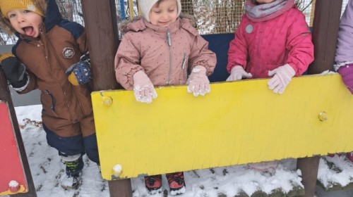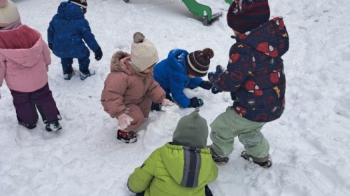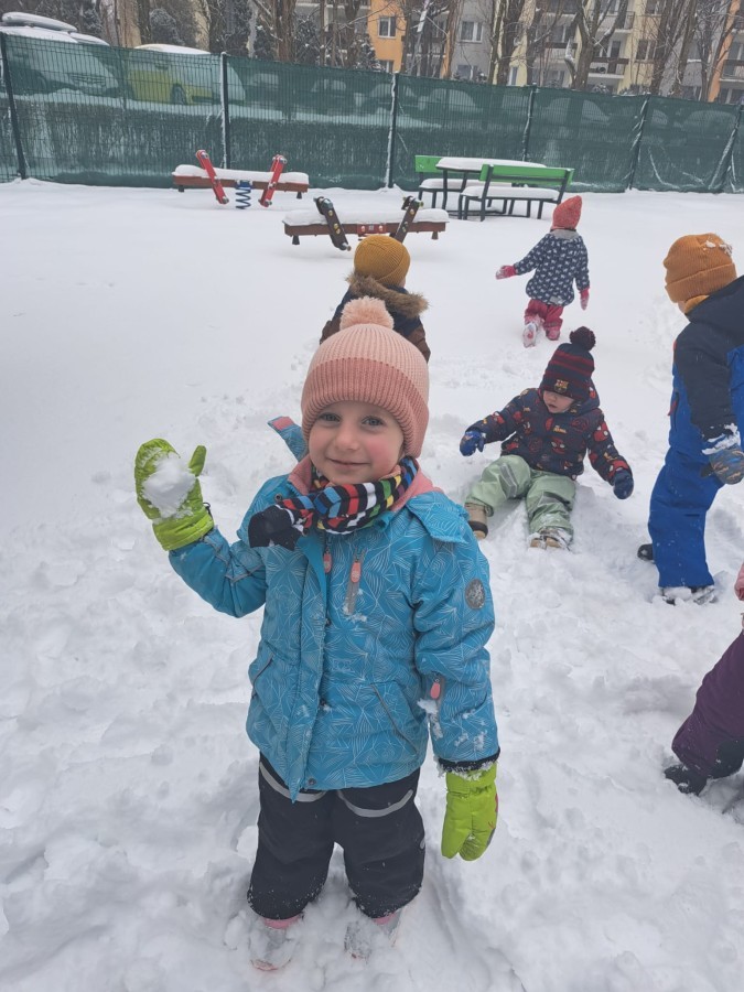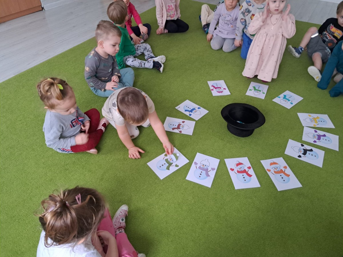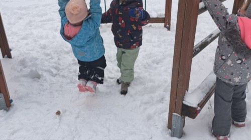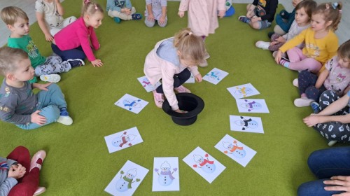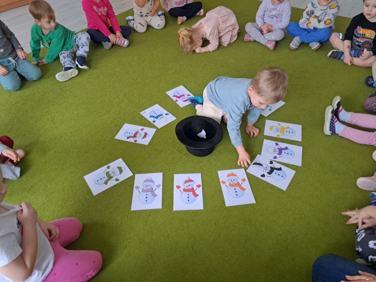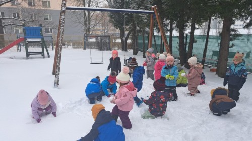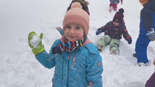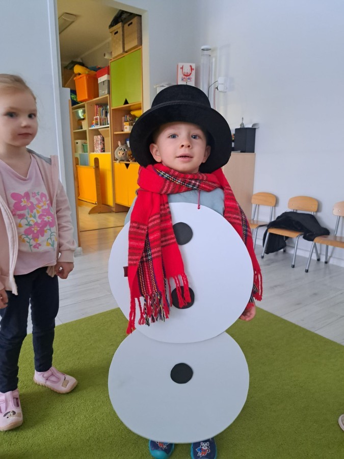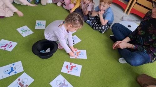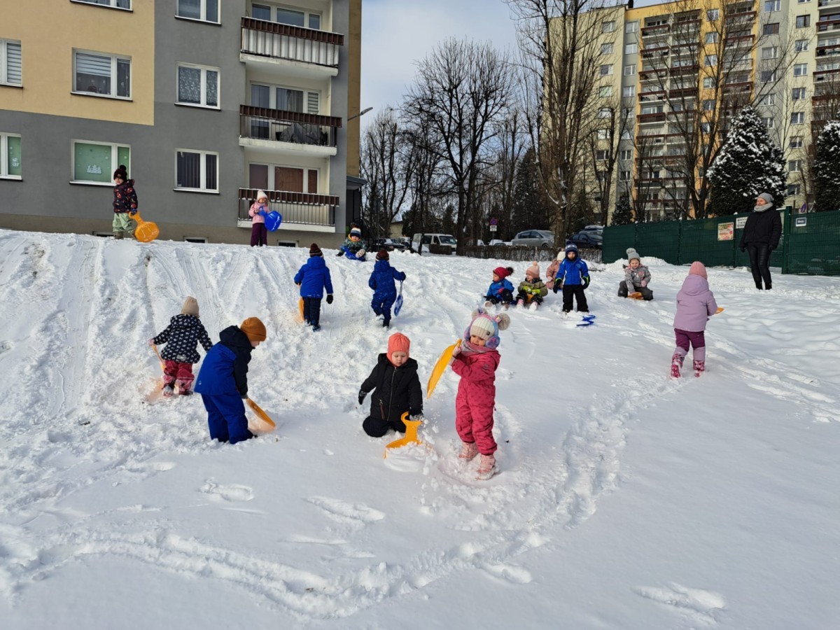 W drugim tygodniu stycznia Liski uczestniczyły w zabawach na śniegu, zjazdach na ślizgaczach. Aktywności ruchowe sprzyjały rozwojowi sprawności fizycznej i koordynacji ruchowej. Dodatkowo dzieci z Panią Gabrysią na zajęciach z języka angielskiego utrwalały nazwy kolorów nazywając kolory czapek bałwanków, łącząc naukę z radosną zabawą.