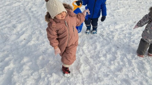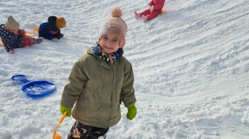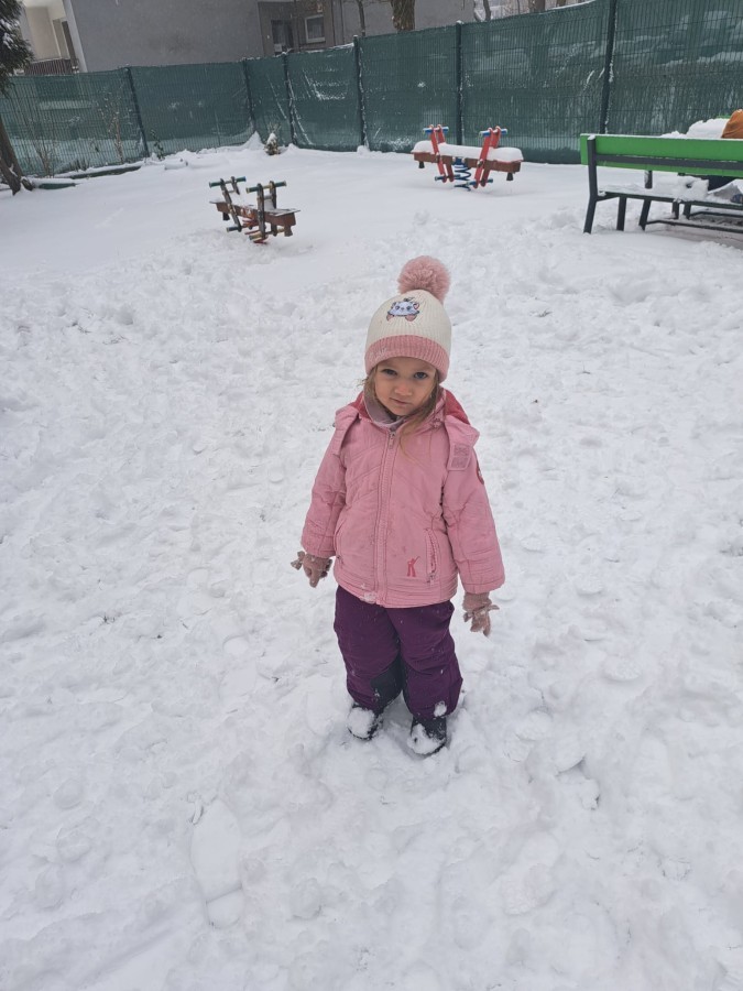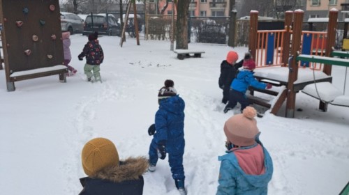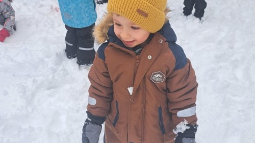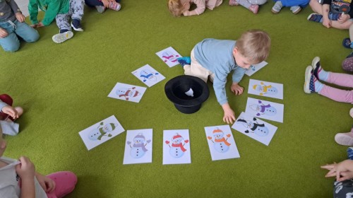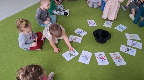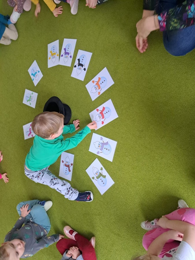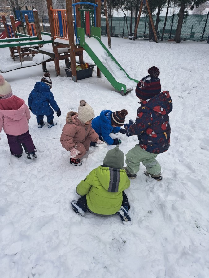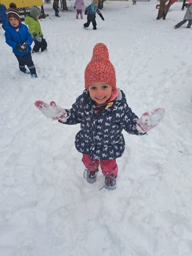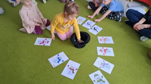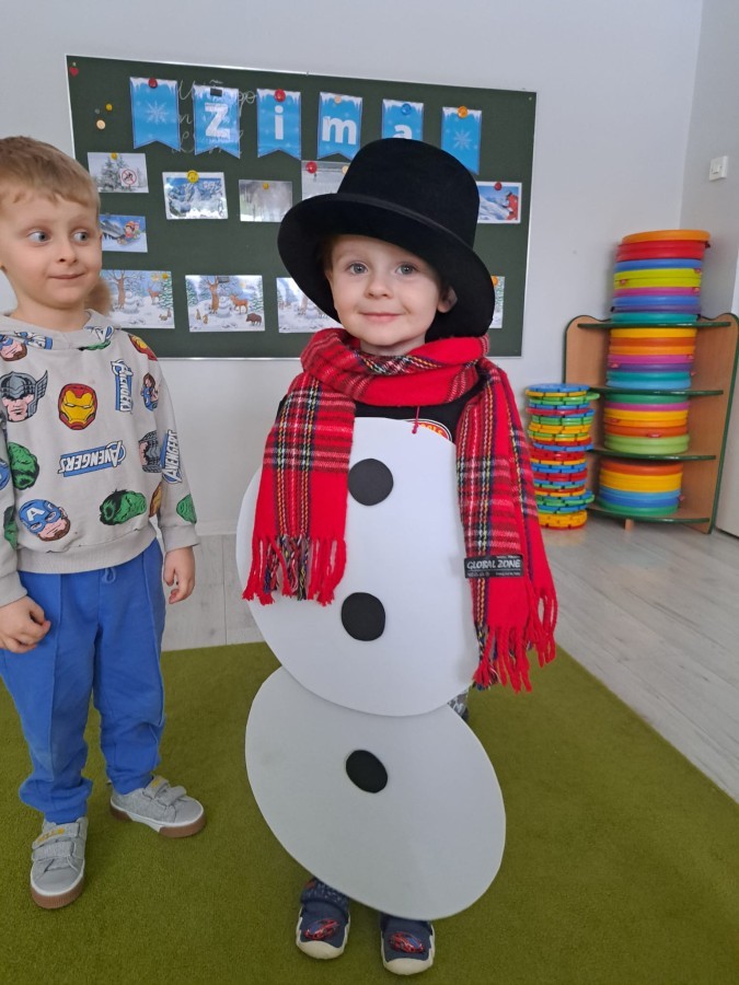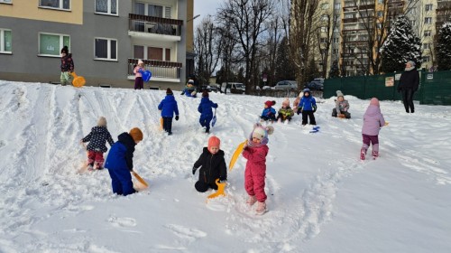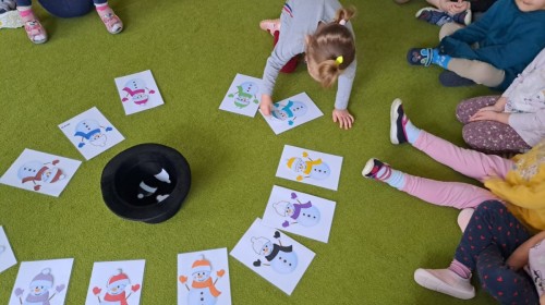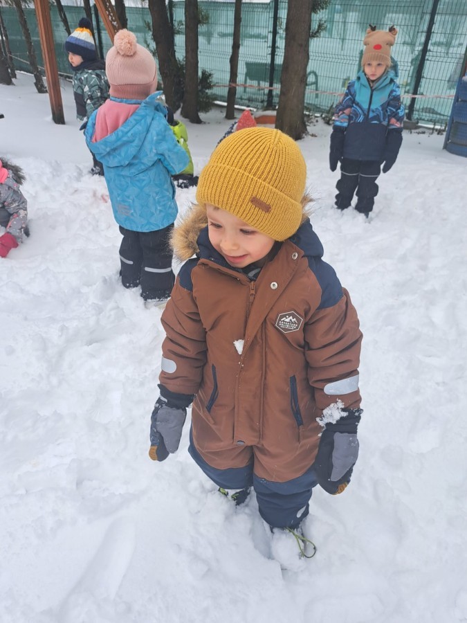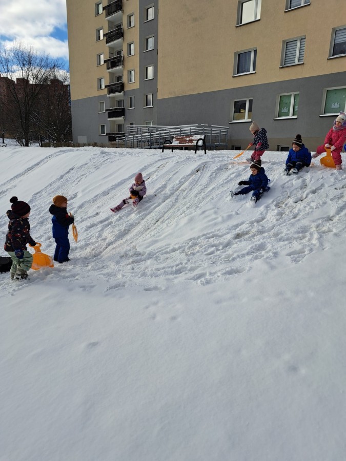 W drugim tygodniu stycznia Liski uczestniczyły w zabawach na śniegu, zjazdach na ślizgaczach. Aktywności ruchowe sprzyjały rozwojowi sprawności fizycznej i koordynacji ruchowej. Dodatkowo dzieci z Panią Gabrysią na zajęciach z języka angielskiego utrwalały nazwy kolorów nazywając kolory czapek bałwanków, łącząc naukę z radosną zabawą.