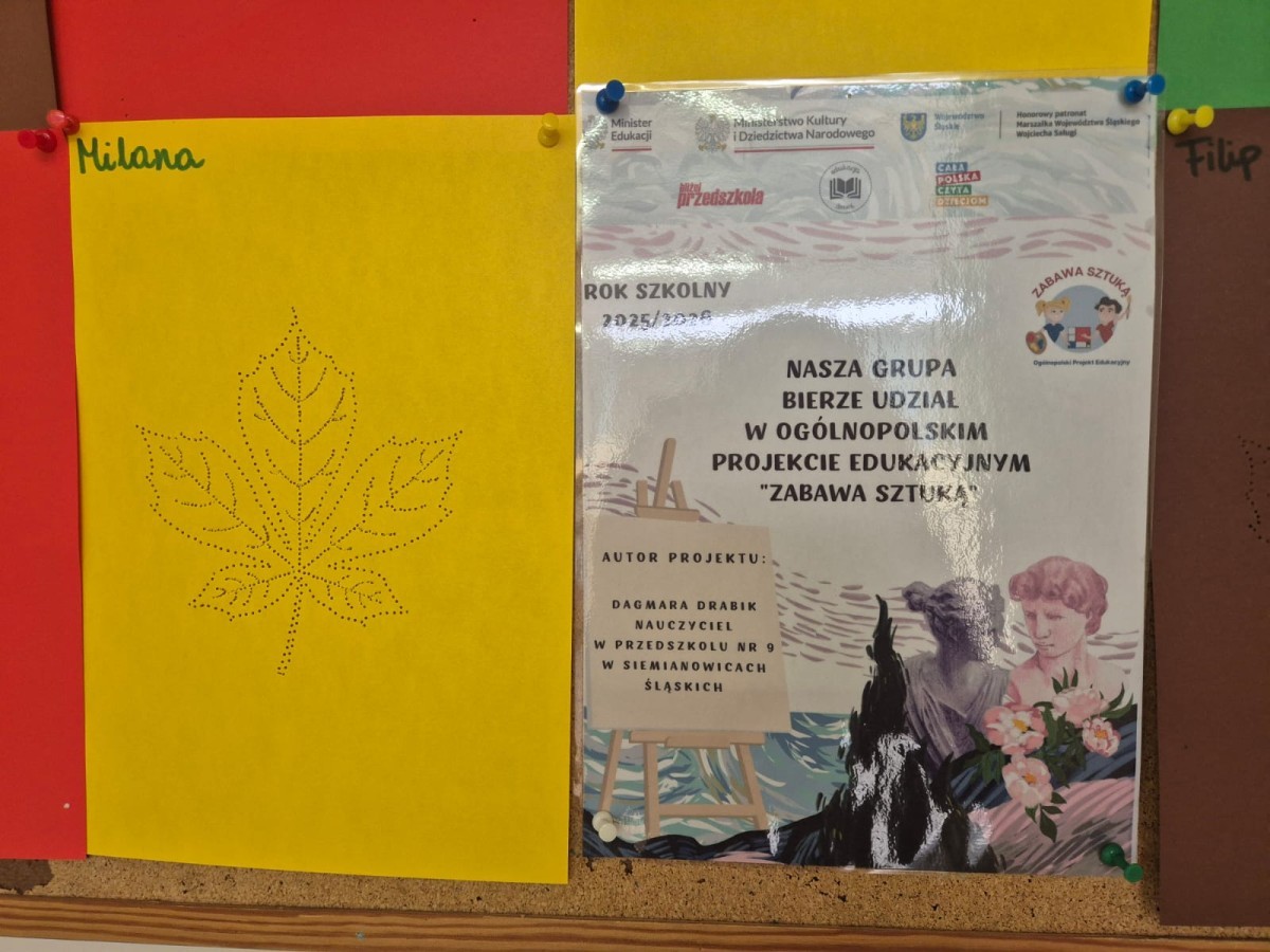 Niepowtarzalny projekt, który dostosowany jest do potrzeb i możliwości dzieci, w tym tych o specjalnych potrzebach edukacyjnych. Jedyny w swoim rodzaju, który od kilku lat cieszy się ogromnym zainteresowaniem. Wspaniały projekt, który poprzez zabawę wprowadza dzieci w świat sztuki i uczy dostrzegać ją wokół siebie każdego dnia. Ponadto to innowacyjne połączenie sztuki z kompetencjami kluczowymi, a wszystko w duchu pedagogiki Froebla. W naszym przedszkolu udział w tym projekcie bierze grupa "Wilki".